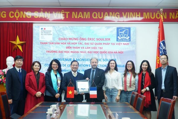 Ngày 29/01/2026, Trường Đại học Ngoại ngữ – Đại học Quốc gia Hà Nội đã đón tiếp Tham tán Văn hóa và Hợp tác, Đại sứ quán Pháp tại Việt Nam Éric Soulier đến thăm và làm việc nhằm tăng cường kết nối giữa hai