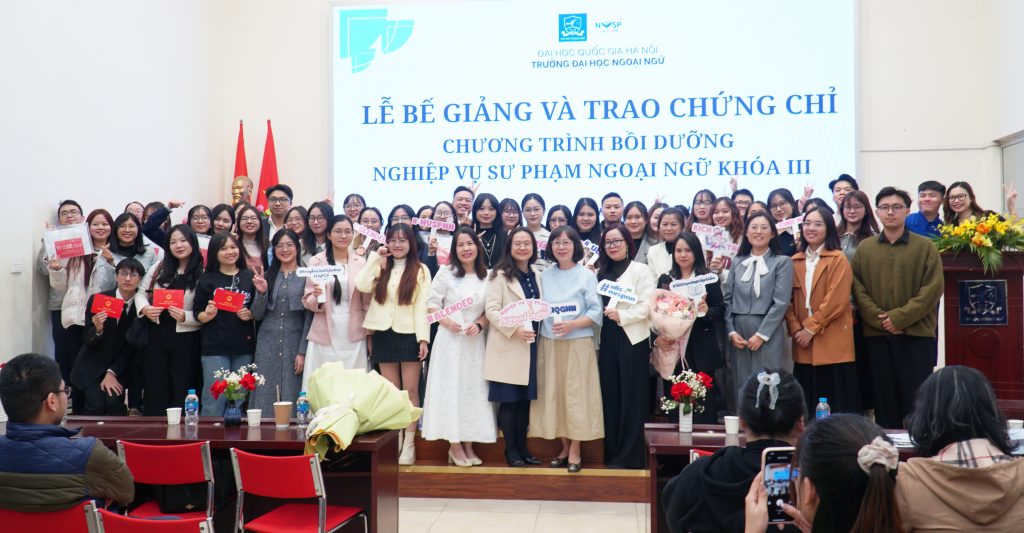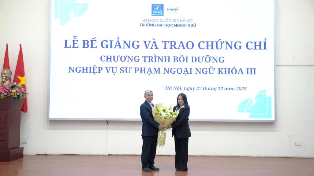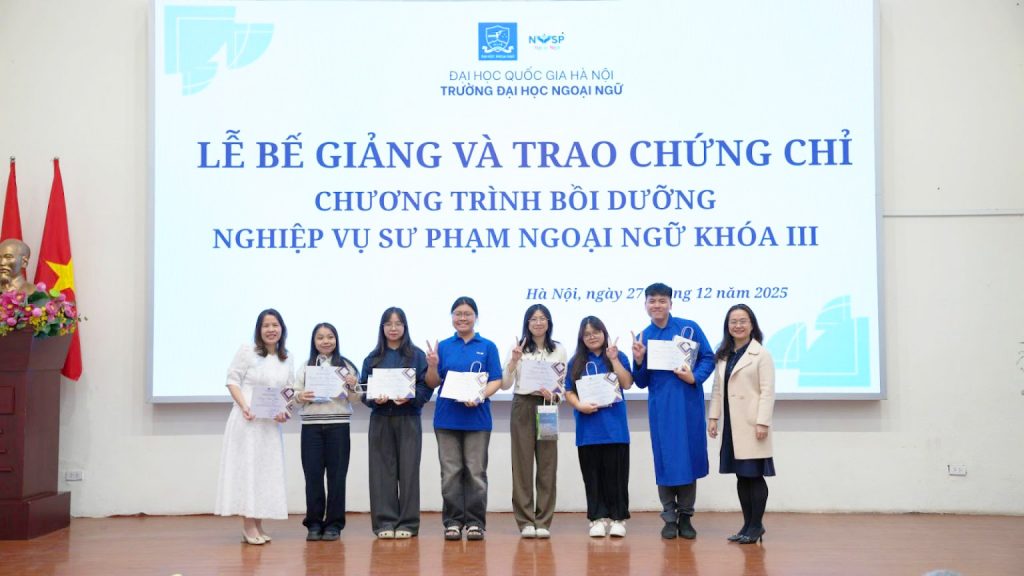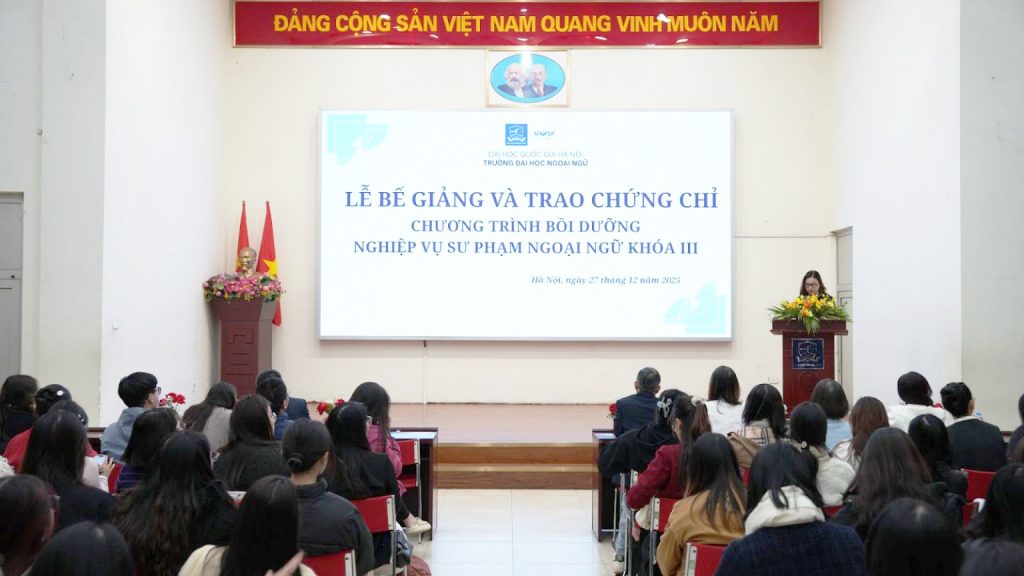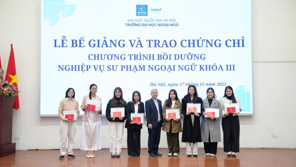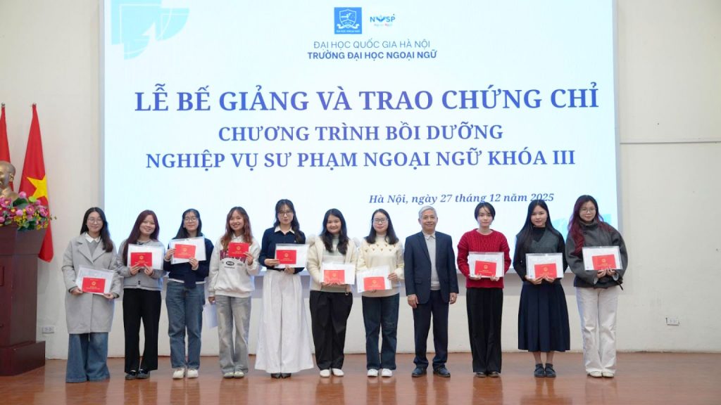 Ngày 27/12/2025, Trường Đại học Ngoại ngữ – Đại học Quốc gia Hà Nội đã tổ chức Lễ Bế giảng và Trao chứng chỉ Chương trình bồi dưỡng Nghiệp vụ sư phạm ngoại ngữ khóa III và Lễ Khai giảng Chương trình bồi dưỡng nghiệp vụ sư phạm ngoại ngữ khóa VI.