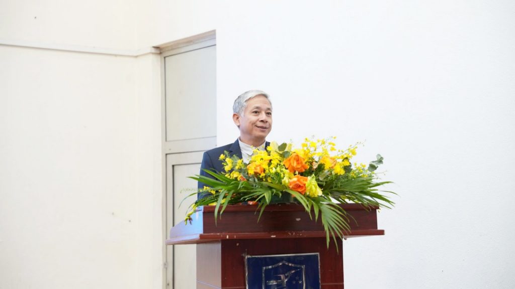 Phát biểu khai mạc, Phó Hiệu trưởng Lâm Quang Đông gửi lời chúc mừng tới 211 học viên khóa III khi đã hoàn thành xuất sắc chương trình bồi dưỡng Nghiệp vụ sư phạm ngoại ngữ. Mượn câu tục ngữ dân gian “Một chữ cũng là thầy, nửa chữ cũng là thầy”, PGS. TS. Lâm Quang Đông đánh giá cao những nỗ lực của các học viên khóa III trong suốt quãng thời gian vừa qua và hy vọng với những hành trang về sư phạm mà khóa học mang lại sẽ giúp các học viên vững bước trên con đường nhà giáo trong tương lai. Nhân dịp này, Phó Hiệu trưởng cũng gửi lời chào mừng tới các học viên khóa VI và mong rằng các học viên sẽ có được những trải nghiệm quý giá trong quãng thời gian sắp tới.