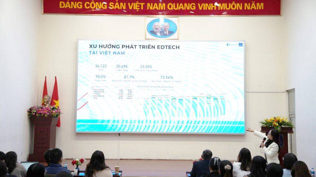 Giám đốc học thuật Edupia Tutor Nguyễn Hoàng Lan cũng có phần chia sẻ về “Ngành giáo dục Edtech và xu hướng giáo dục mới tại Việt Nam”. Theo ThS. Nguyễn Hoàng Lan, người giáo viên ngoài năng lực ngoại ngữ thành thạo tiếng thì còn cần thêm những năng lực công nghệ để áp dụng trong xu hướng giáo dụng ngoại ngữ gắn liền với công nghệ (Edtech). Thông qua những con số biết nói về xu hướng Edtech ở Việt Nam trong giai đoạn kỷ nguyên số, cô đã chia sẻ các hướng đi, các kỹ năng nhằm giúp các học viên tích lũy bộ công cụ công nghệ, từ đó áp dụng trong việc dạy học ngoại ngữ bao gồm kỹ năng cứng, kỹ năng mềm, Thái độ & Tư duy, các kỹ năng xây dựng giáo án, bài giảng online, nhận diện người học,…