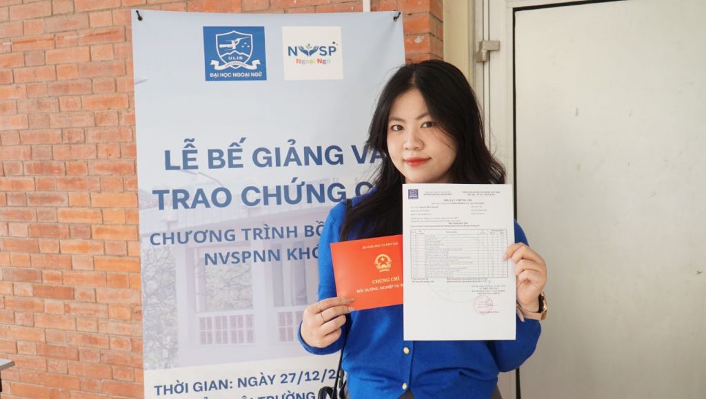 Cũng tại chương trình, Phó Trưởng Phòng ĐT&NH Nguyễn Quỳnh Hoa đã đọc quyết định công nhận và trao chứng chỉ cho 211 học viên hoàn thành Chương trình bồi dưỡng nghiệp vụ sư phạm ngoại ngữ khóa III.