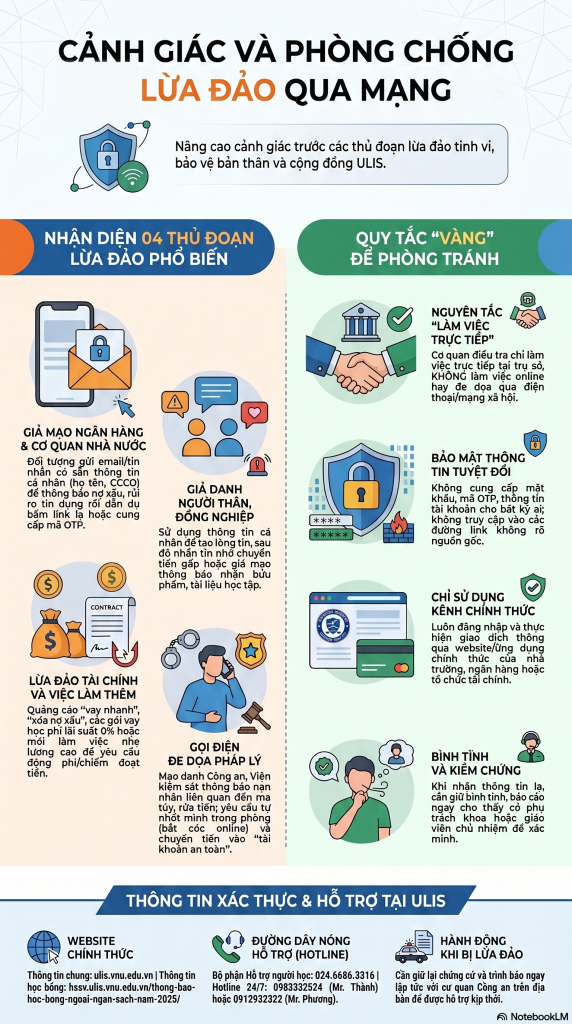 - LUÔN kiểm chứng thông tin qua kênh chính thống hoặc liên hệ trực tiếp Nhà trường