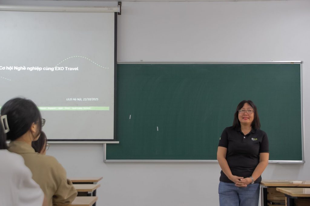 Ngày 22/10/2025, Khoa Ngôn ngữ và Văn hóa Đức, Trường Đại học Ngoại ngữ – Đại học Quốc gia Hà Nội đã tổ chức buổi tọa đàm với chủ đề: “Các vị trí việc làm và cơ hội trong lĩnh vực du lịch”. Đồng hành với thầy và trò Khoa NN&VH Đức là đại diện Công ty Cổ phần du lịch Exotissimo (EXO Travel), bà Nguyễn Thị Hương Giang (Operations Manager) và ông Nguyễn Tiến Quang (Tour Guide Manager). Tọa đàm đã nhận được sự quan tâm từ đông đảo các bạn sinh viên khoa NN&VH Đức.