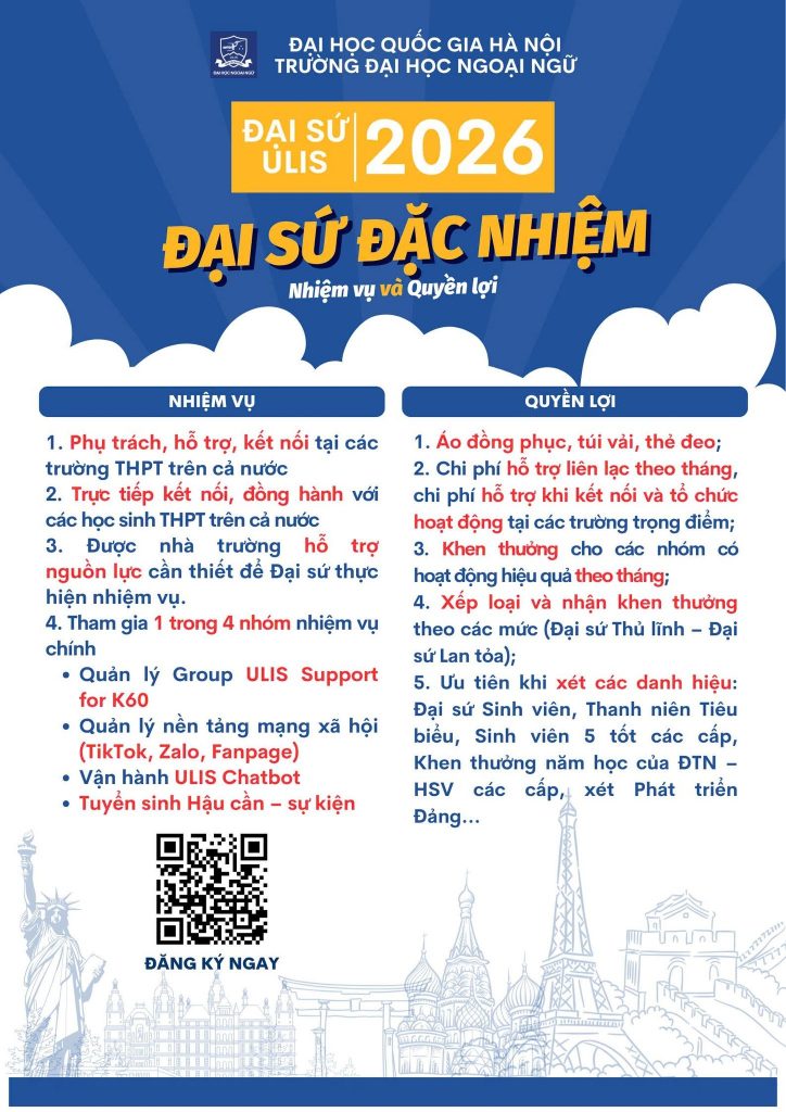 Chính thức khởi động Đại sứ ULIS 2026 – Đại sứ Đặc nhiệm – Trường Đại học Ngoại ngữ – Đại học Quốc gia Hà Nội