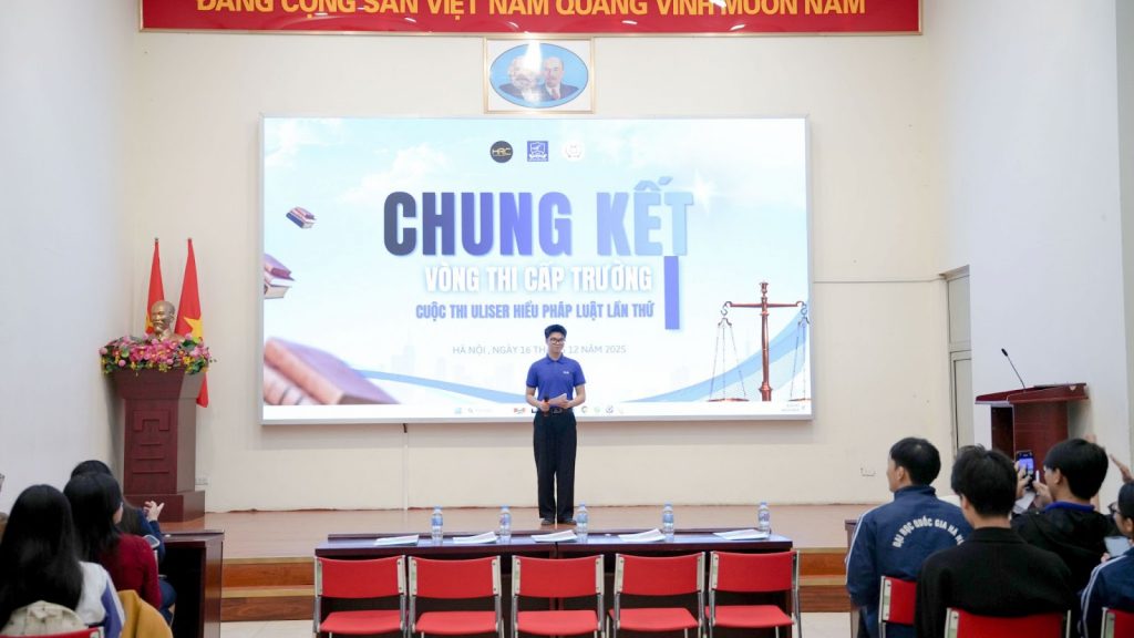Ngày 16/12/2025, Trường Đại học Ngoại ngữ – Đại học Quốc gia Hà Nội đã tổ chức Chung kết Vòng thi cấp Trường cuộc thi “ULISer hiểu pháp luật” lần thứ I tại hội trường Vũ Đình Liên. Cuộc thi nhằm tạo sân chơi bổ ích, góp phần nâng cao nhận thức và ý thức chấp hành pháp luật trong cộng đồng sinh viên ULIS.
