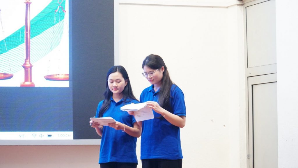 Phát biểu khai mạc, Phó Hiệu trưởng Hà Lê Kim Anh nhấn mạnh ý nghĩa thiết thực của cuộc thi trong việc đưa pháp luật đến gần hơn với sinh viên và đồng thời gửi lời cảm ơn tới Ban Tổ chức vì đã xây dựng một sân chơi giàu ý nghĩa, góp phần giúp sinh viên không chỉ tiếp thu kiến thức học thuật trên giảng đường mà còn được trang bị những hiểu biết cần thiết về pháp luật trong bối cảnh nhiều quy định mới đang được ban hành. Qua đó, Phó Hiệu trưởng khuyến khích sinh viên chủ động học tập, tích cực tìm hiểu và nâng cao ý thức chấp hành pháp luật.
