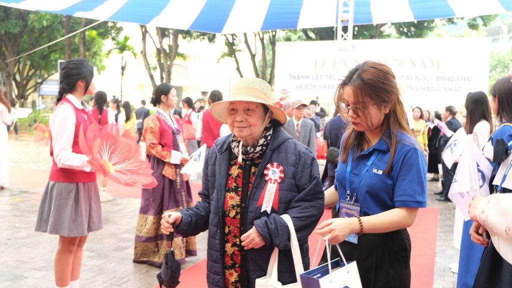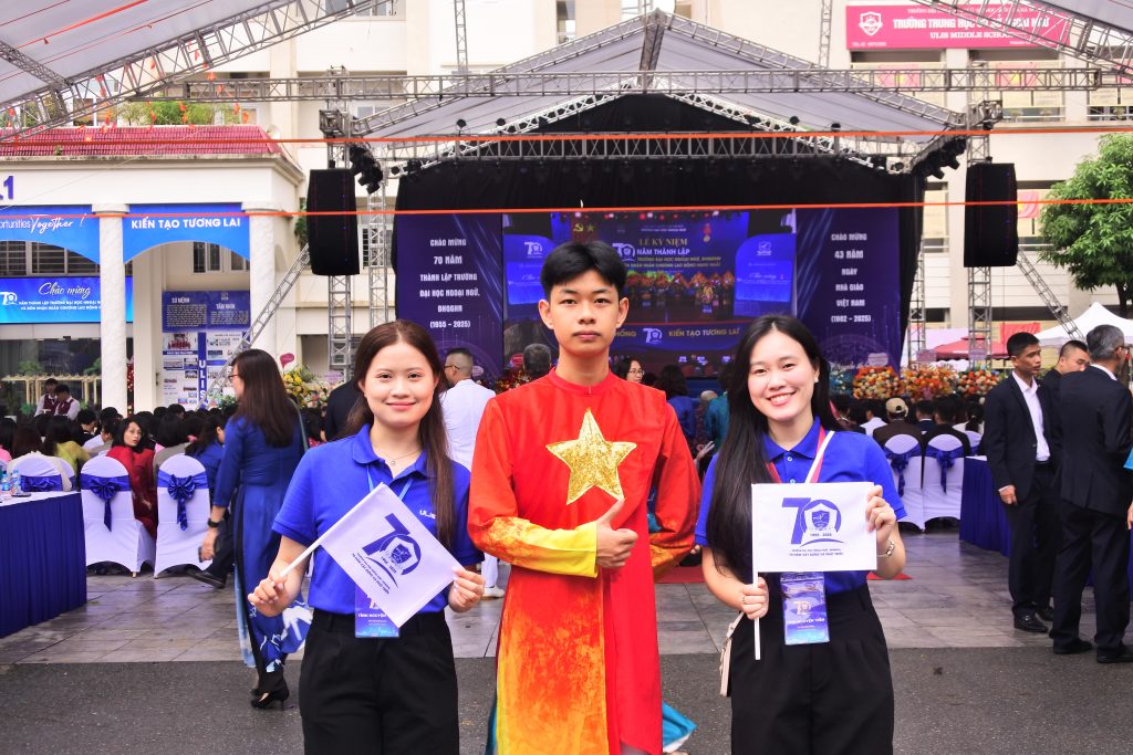 Tiếp nối chương trình, đại diện sinh viên Vũ Thanh Thảo (Khoa NN&VH Trung Quốc) đã bày tỏ niềm xúc động và tự hào khi được tham dự Lễ kỷ niệm 70 năm thành lập Trường. Vũ Thanh Thảo cho biết, ULIS không chỉ dạy sinh viên ngoại ngữ mà còn mở ra cơ hội để hiểu, lắng nghe và kết nối với thế giới, đồng thời giữ gìn giá trị văn hóa Việt Nam. Từ những ngày đầu bỡ ngỡ, sinh viên được tạo điều kiện tham gia nhiều hoạt động trọng đại của quốc gia như diễu binh, diễu hành, gặp gỡ nguyên thủ quốc gia và góp mặt trong các sự kiện quan trọng, nhờ đó nhận ra trách nhiệm và vai trò của mình trong việc “nói lên tiếng nói của tuổi trẻ Việt Nam” giữa thế giới.