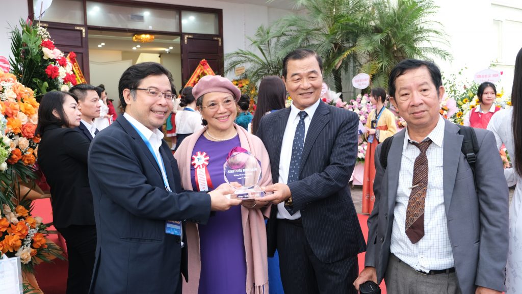 Cũng tại buổi lễ, Hiệu trưởng Nguyễn Xuân Long đã tặng hoa tri ân các thầy, cô nguyên lãnh đạo của trường các thời kỳ, ghi nhận công lao và đóng góp của các thế hệ cán bộ, học sinh, sinh viên Trường Đại học Sư phạm Ngoại ngữ – nay là Trường Đại học Ngoại ngữ, ĐHQGHN, những người đã đặt nền móng vững chắc và vun đắp sự phát triển của Nhà trường. Đây cũng là dịp tôn vinh những nỗ lực rèn luyện, nghiên cứu, sáng tạo và hoàn thiện kỹ năng của cán bộ, học sinh, sinh viên hiện nay, góp phần xây dựng Tổ quốc Việt Nam giàu mạnh, văn minh. Trong không khí trang trọng, các thầy, cô nguyên Hiệu trưởng và Phó Hiệu trưởng các thời kỳ đại diện cho các thế hệ cán bộ, học sinh, sinh viên lên tặng hoa, thay cho lời cảm ơn sâu sắc từ tập thể lãnh đạo Trường Đại học Ngoại ngữ.