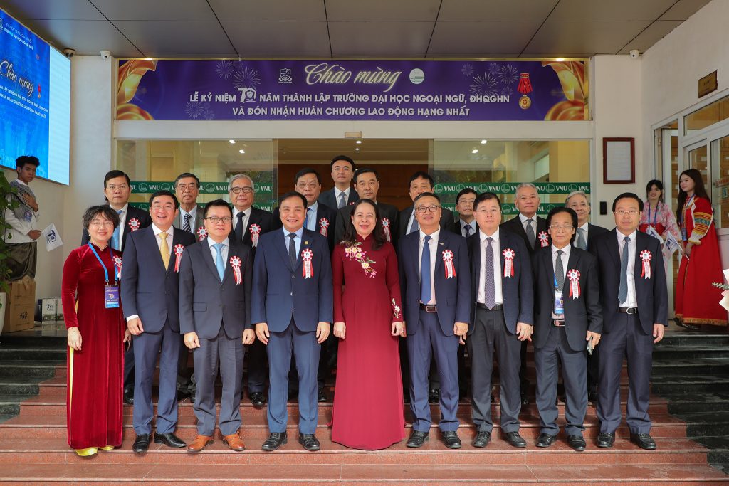 Tại buổi lễ, Ủy viên Ban Chấp hành Trung ương Đảng Cộng sản Việt Nam, Phó Chủ tịch nước Cộng hòa xã hội chủ nghĩa Việt Nam Võ Thị Ánh Xuân đã thay mặt Lãnh đạo Đảng và Nhà nước trao tặng Huân chương Lao động hạng Nhất cho Trường Đại học Ngoại ngữ, đồng thời trao quà lưu niệm chúc mừng Nhà trường.