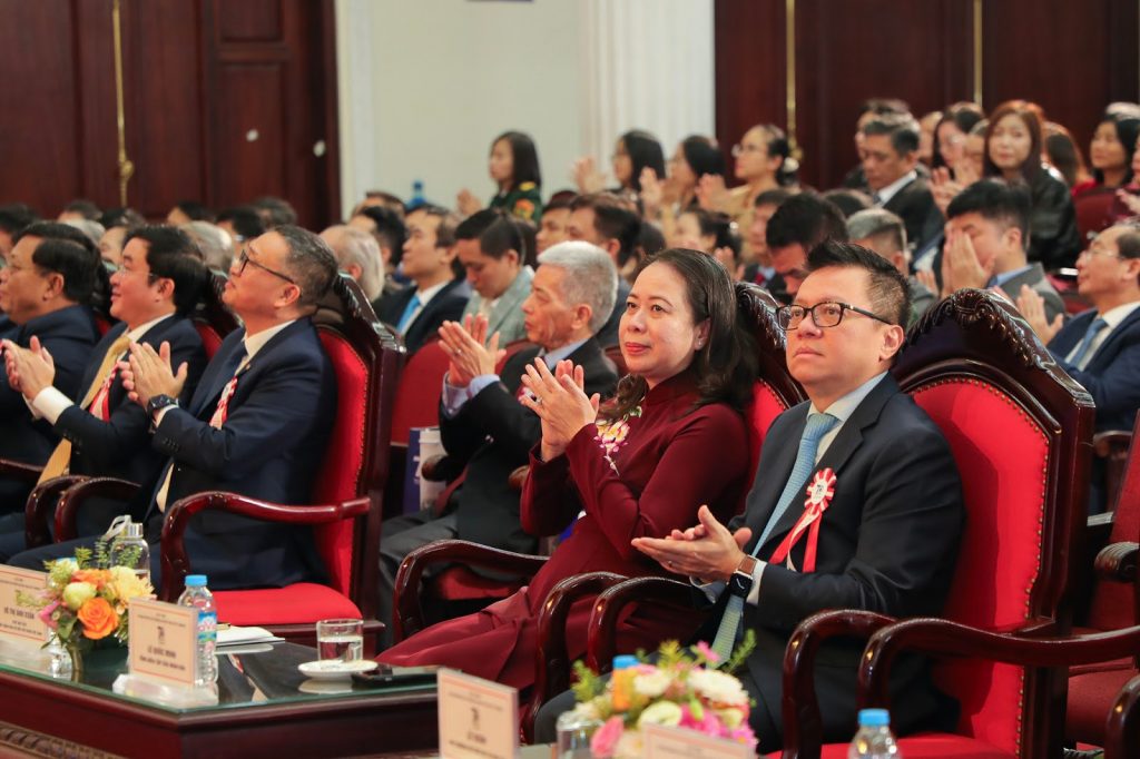 Ủy viên Ban chấp hành Trung ương Đảng Cộng sản Việt Nam, Phó Chủ tịch nước Võ Thị Ánh Xuân dự buổi lễ và trao Huân chương Lao động hạng Nhất cho Trường Đại học Ngoại ngữ.