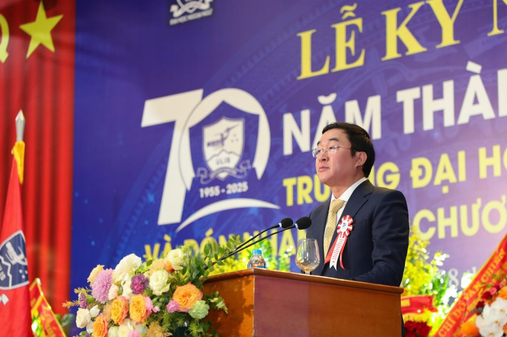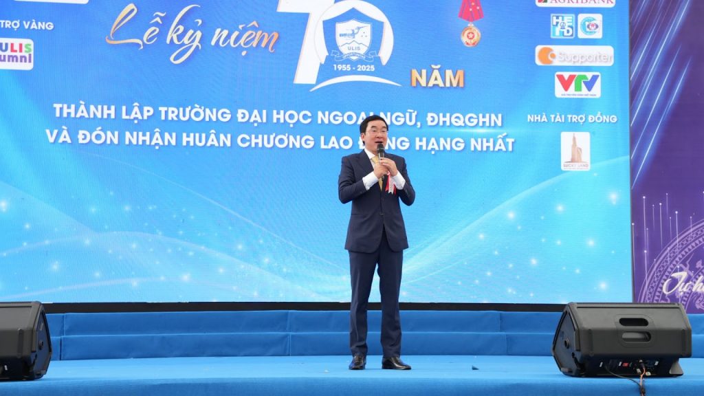 Phát biểu tại lễ kỷ niệm, PGS.TS. Đào Thanh Trường, Phó Giám đốc ĐHQGHN đã nhấn mạnh 70 năm là dấu mốc quan trọng không chỉ của Trường Đại học Ngoại ngữ và ĐHQGHN mà còn của toàn hệ thống giáo dục Việt Nam. Phó Giám đốc ĐHQGHN gửi lời cảm ơn sâu sắc tới lãnh đạo Bộ Giáo dục và Đào tạo, các bộ, ban, ngành trung ương và địa phương, cùng các đại sứ quán và tổ chức quốc tế, đã đồng hành, hỗ trợ Trường Đại học Ngoại ngữ trong suốt quá trình phát triển. Qua 70 năm, Nhà trường đã đào tạo nhiều thế hệ cán bộ, giáo viên và chuyên gia xuất sắc, giữ gìn bản sắc, truyền thống ULIS, đồng thời nâng cao uy tín và thương hiệu.