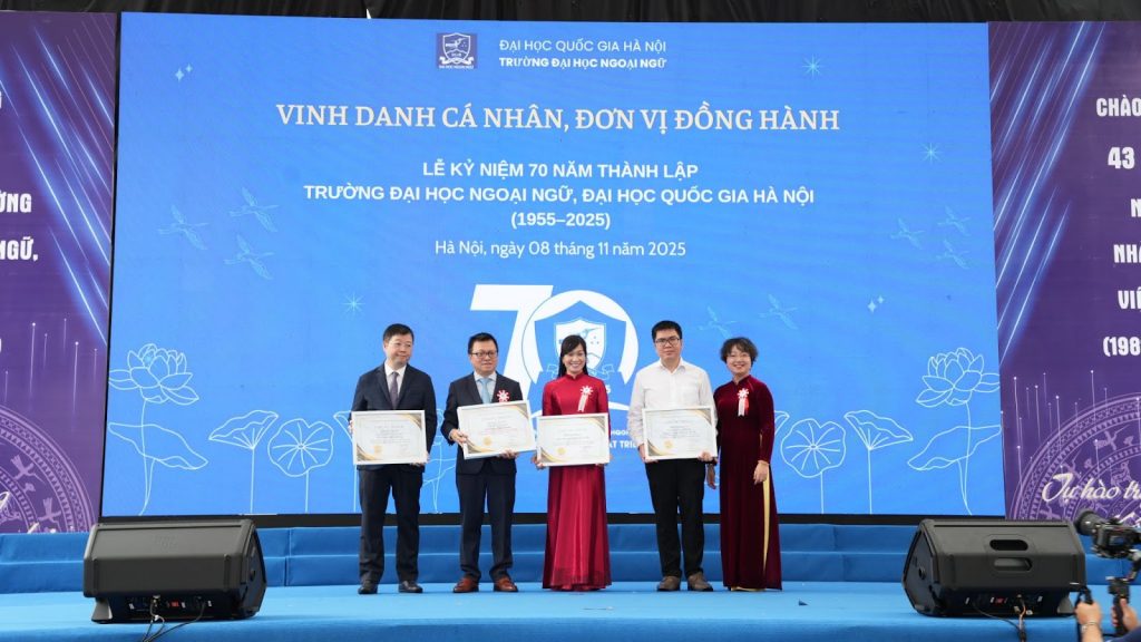 Ngày 8/11/2025, Trường Đại học Ngoại ngữ, Đại học Quốc gia Hà Nội đã long trọng tổ chức Lễ kỷ niệm 70 năm thành lập Trường (1955-2025) và đón nhận Huân chương Lao động hạng Nhất.
