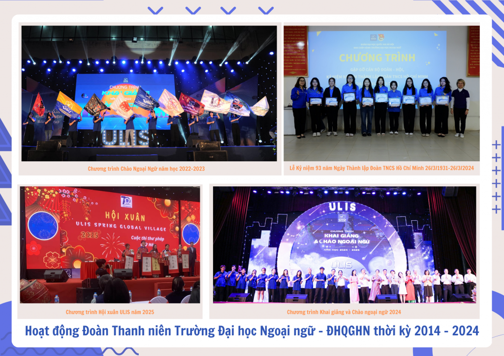 Công tác Đoàn và phong trào thanh niên Trường ĐHNN – ĐHQGHN luôn được triển khai một cách bài bản, chính qui, có những nét mới, sáng tạo, các hoạt động diễn ra sôi nổi, có tính thiết thực, có chiều sâu và lâu dài, phát huy thế mạnh chuyên môn của đơn vị. Ban Thường vụ, Ban Chấp hành Đoàn Trường ĐHNN – ĐHQGHN đã thực hiện tốt chức năng trong công tác chỉ đạo, điều hành và tổ chức các hoạt động, các phong trào thi đua của tuổi trẻ ĐHNN – ĐHQGHN. Các cấp bộ Đoàn của Trường ĐHNN – ĐHQGHN đã có sự tìm tòi, suy nghĩ thiết kế và tổ chức các hoạt động một cách sáng tạo, bài bản, vừa đáp ứng được nhu cầu, sở thích của đoàn viên, thanh niên, đồng thời đã cố gắng gắn với việc gián tiếp hoặc trực tiếp tham gia thực hiện nhiệm vụ nâng cao chất lượng đào tạo, nghiên cứu khoa học của Nhà trường nói riêng và ĐHQGHN nói chung.