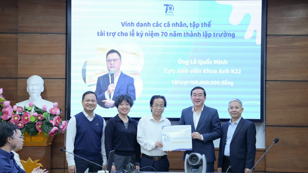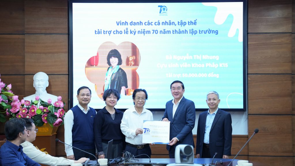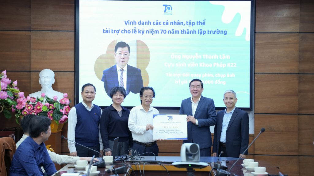 Sáng ngày 24/10/2025, Trường Đại học Ngoại ngữ – Đại học Quốc gia Hà Nội đã tổ chức gặp gỡ và tiếp nhận tài trợ từ một số cá nhân, tổ chức tài trợ cho chương trình kỷ niệm 70 năm thành lập trường (1955-2025).