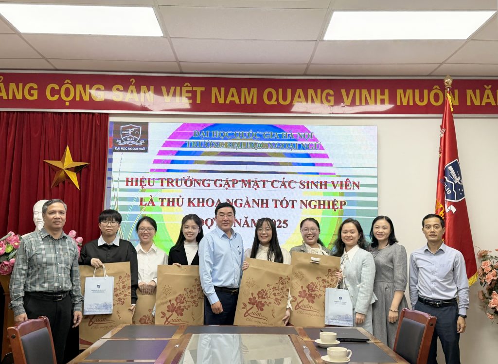 Ngày 18/12/2025, Trường Đại học Ngoại ngữ – Đại học Quốc gia Hà Nội đã tổ chức buổi gặp mặt các sinh viên là thủ khoa ngành tốt nghiệp đợt 2 năm 2025. Buổi gặp mặt diễn ra trong không khí ấm áp, thân tình, thể hiện sự quan tâm, ghi nhận và động viên của Nhà trường đối với những sinh viên có thành tích học tập xuất sắc.