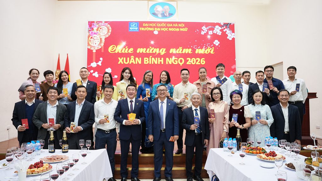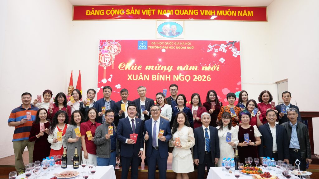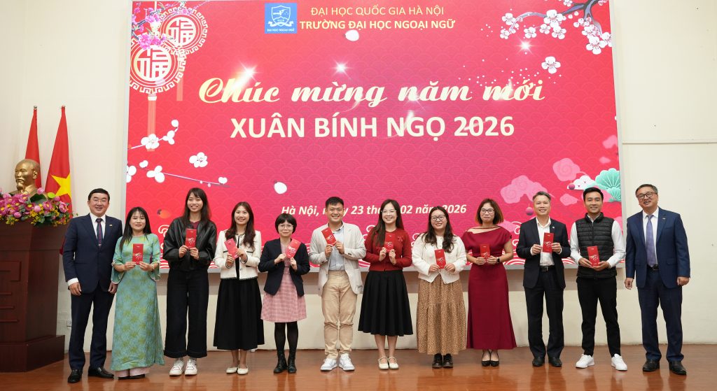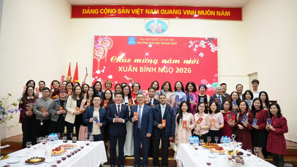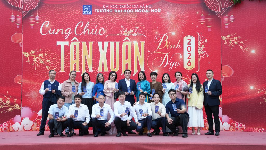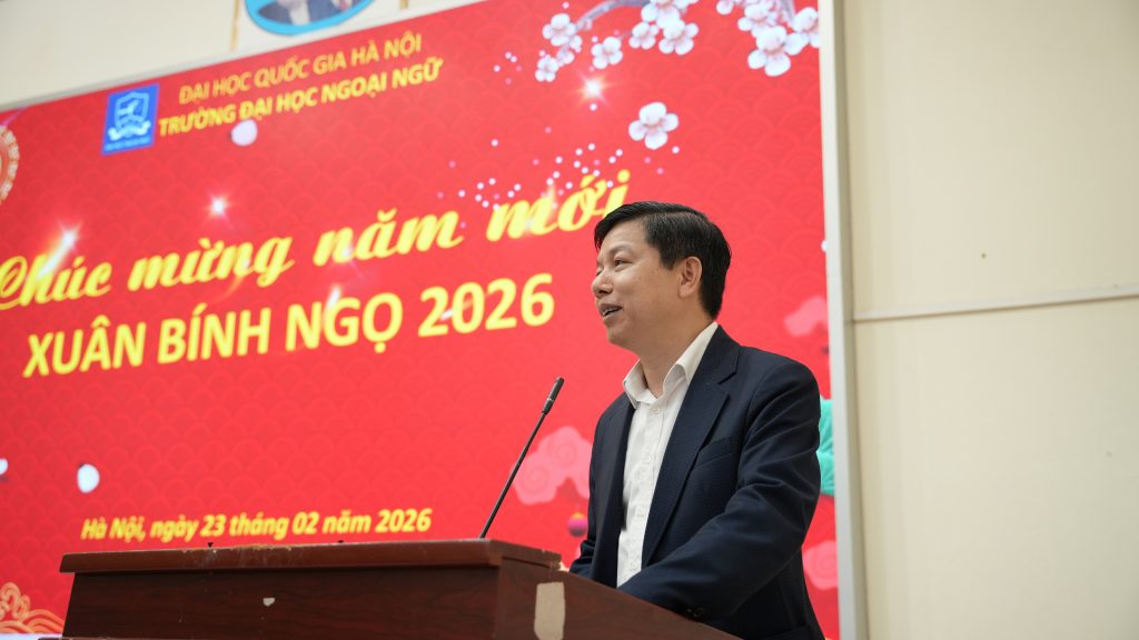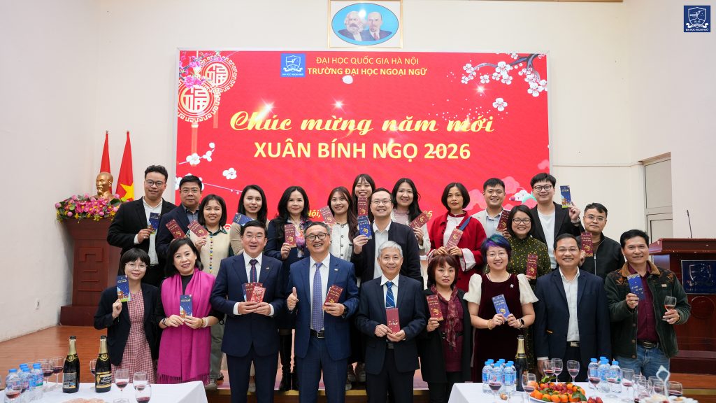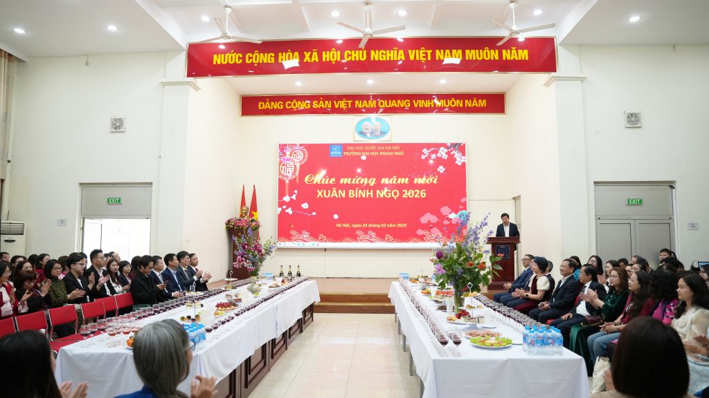 Sáng ngày 23/2/2026 (tức ngày 7 tháng Giêng năm Bính Ngọ), tại Trường Đại học Ngoại ngữ – Đại học Quốc gia Hà Nội, tập thể lãnh đạo Nhà trường cùng cán bộ, viên chức, người lao động đã tham dự chương trình Gặp mặt đầu xuân và triển khai kế hoạch nhiệm vụ năm 2026 trong không khí trang trọng, ấm áp và tràn đầy quyết tâm cho một năm mới.