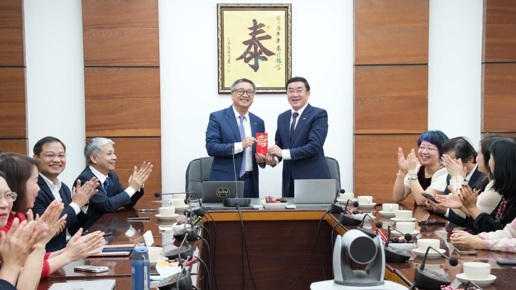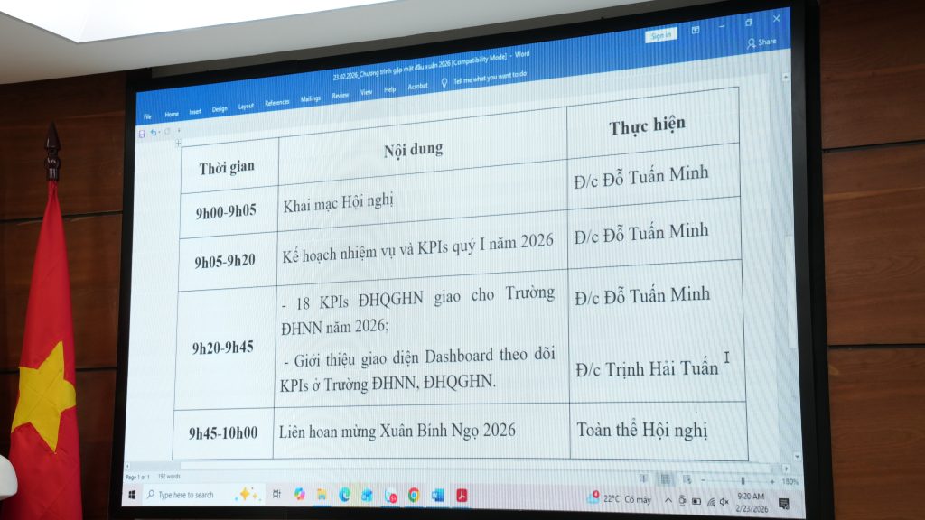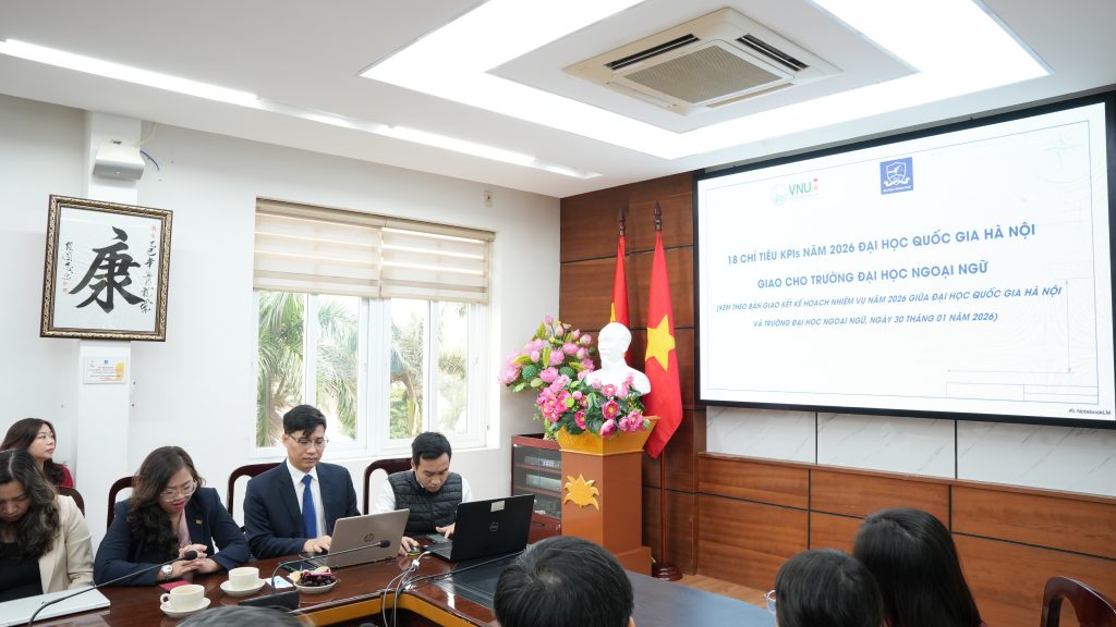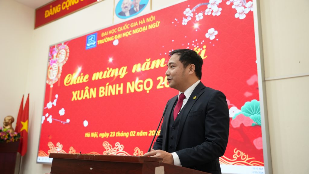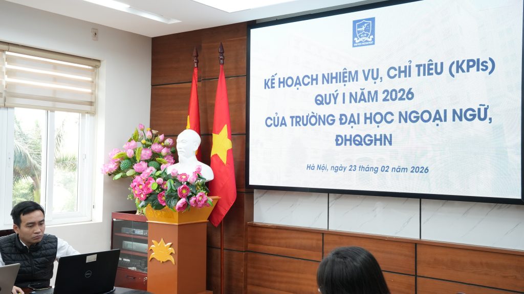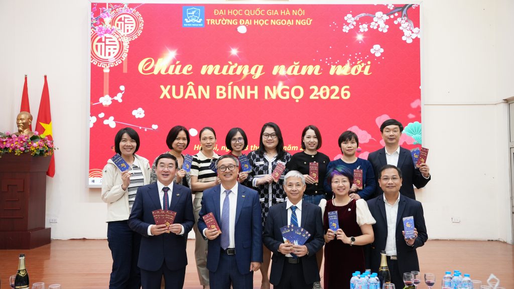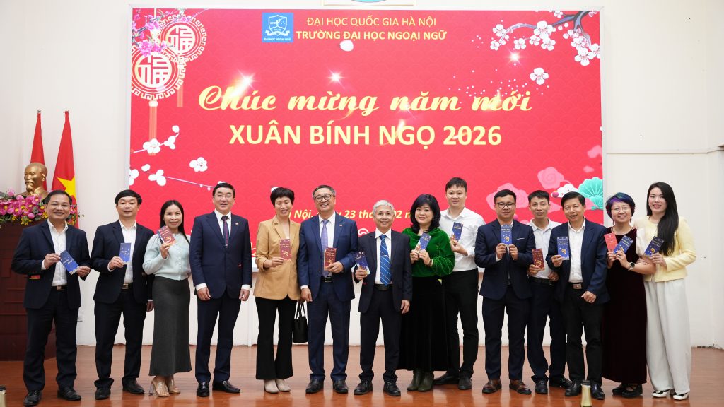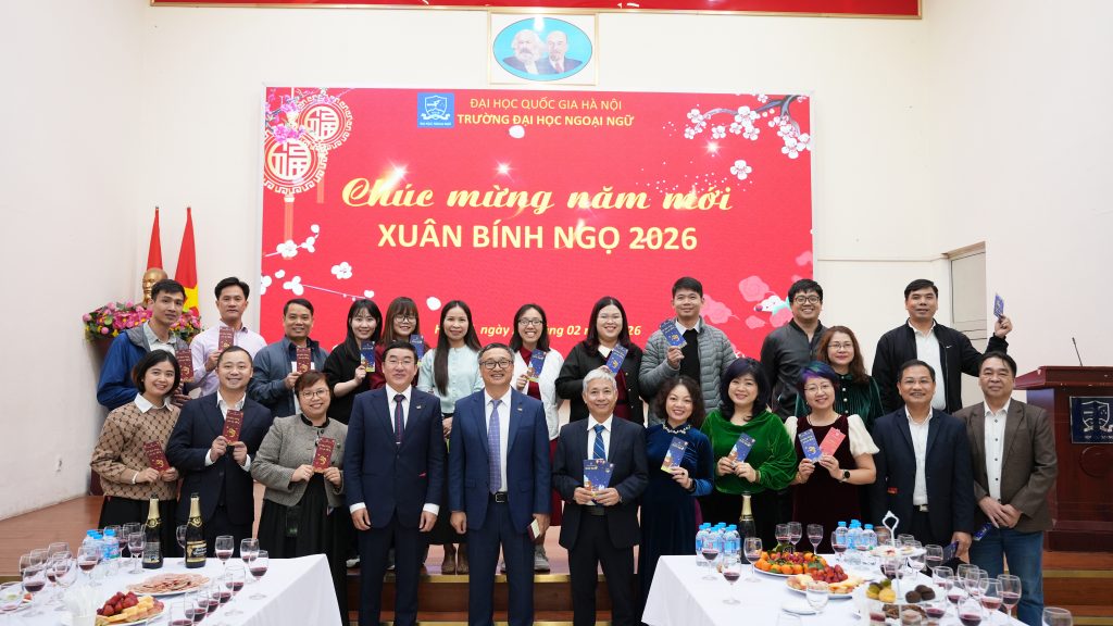 Sáng ngày 23/2/2026 (tức ngày 7 tháng Giêng năm Bính Ngọ), tại Trường Đại học Ngoại ngữ – Đại học Quốc gia Hà Nội, tập thể lãnh đạo Nhà trường cùng cán bộ, viên chức, người lao động đã tham dự chương trình Gặp mặt đầu xuân và triển khai kế hoạch nhiệm vụ năm 2026 trong không khí trang trọng, ấm áp và tràn đầy quyết tâm cho một năm mới.