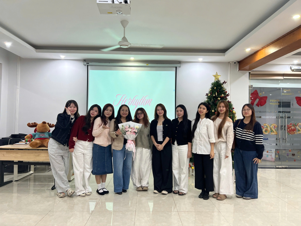 Giảng viên Đào Thị Diệu Linh cùng chụp với nhóm dự án HERhythm sau tọa đàm “Girl talk: Hiểu cơ thể, sống tự tin”