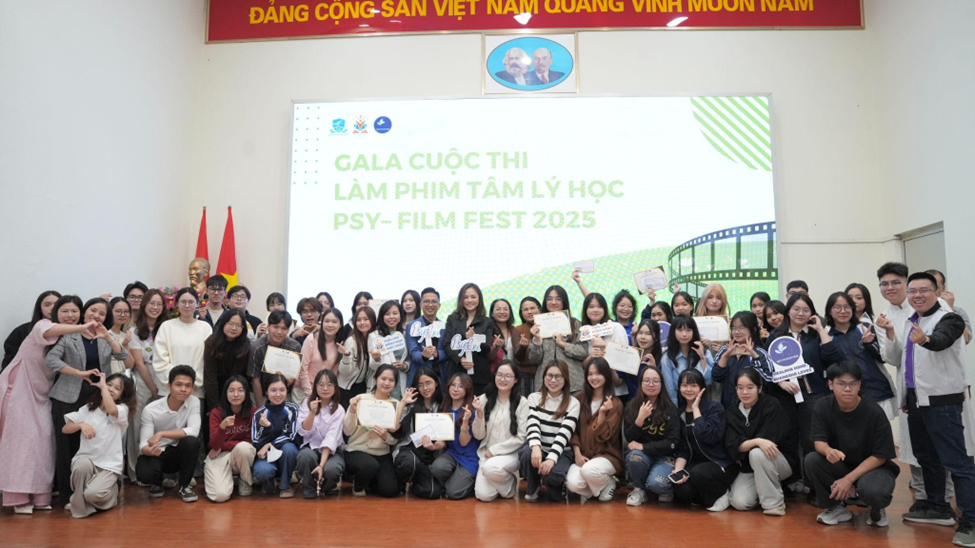 Diễn viên Nguyễn Thu Quỳnh (Quỳnh búp bê), giảng viên Nguyễn Đình Quyền – cùng các Giảng viên trong Khoa – Thành viên Ban giám khảo cuộc thi “Psy – Film Fest” (Cuộc thi do bộ phận Tư vấn và phát triển cá nhân trực thuộc khoa tổ chức)