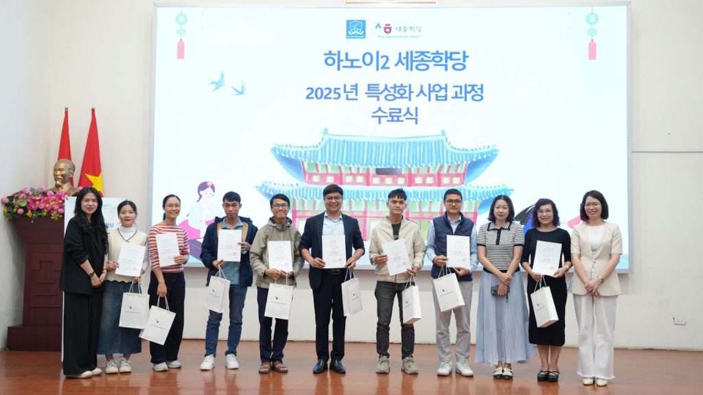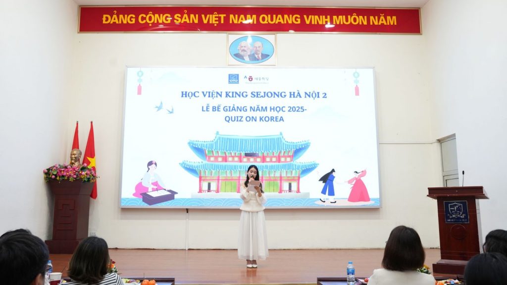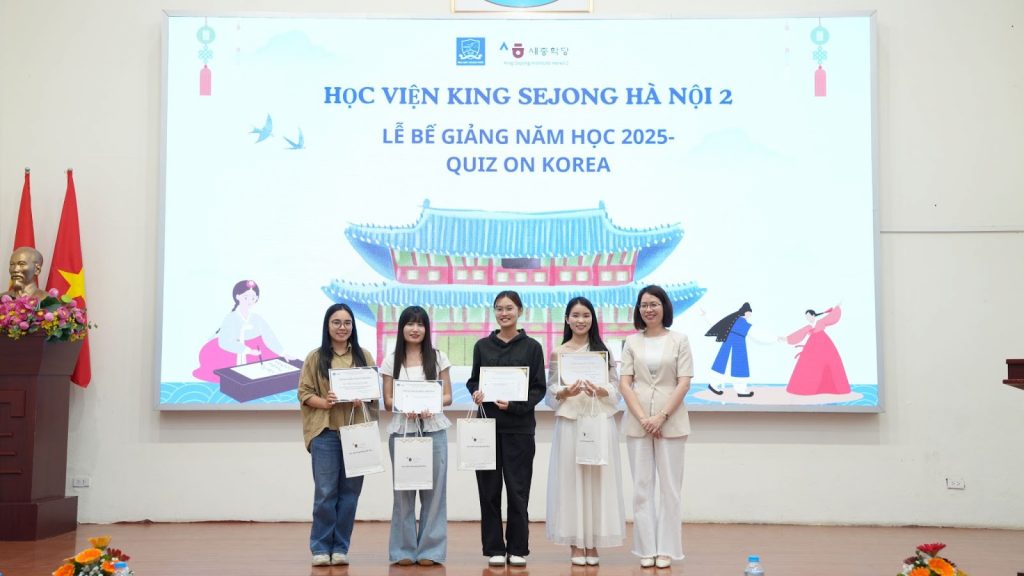 Ngày 24/12/2025, tại Hội trường Vũ Đình Liên, Học viện King Sejong Hà Nội 2, Khoa NN&VH Hàn Quốc, Trường Đại học Ngoại ngữ – Đại học Quốc gia Hà Nội đã tổ chức Lễ bế giảng năm học 2025, khép lại một năm học với nhiều nỗ lực và thành quả đáng ghi nhận.