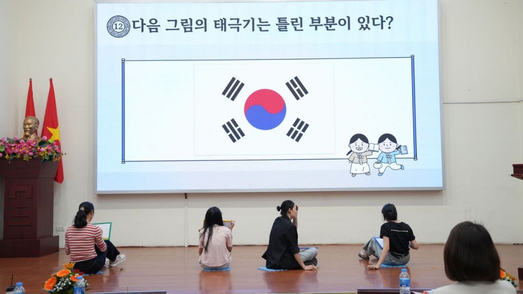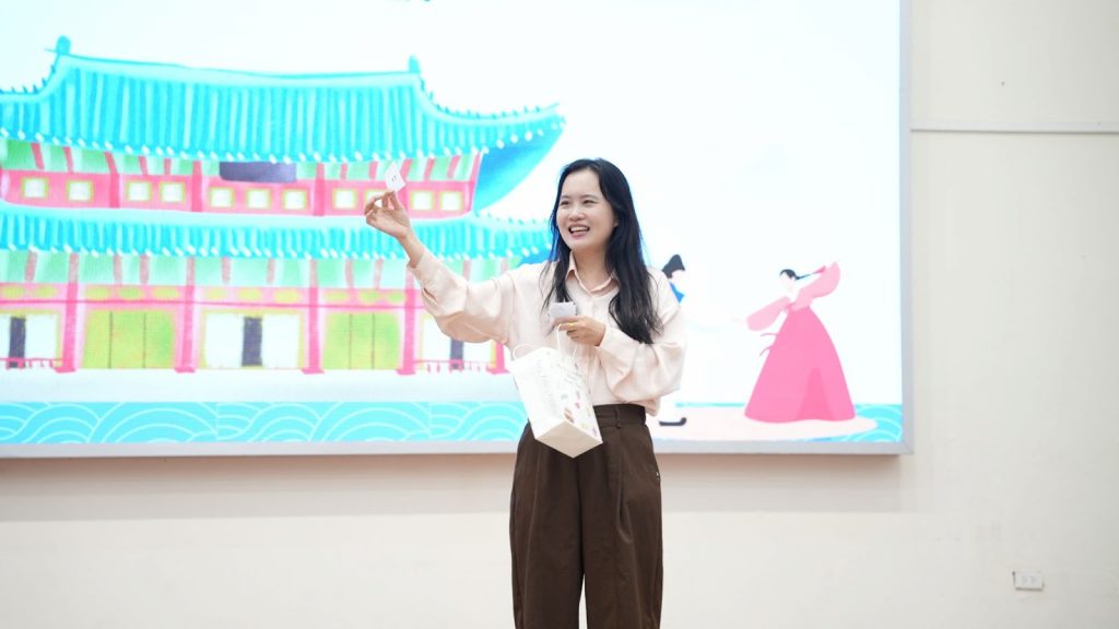 Phần thi Quiz on Korea diễn ra tiếp sau đó đã mang đến những phút giây hào hứng và sôi nổi. Đây vừa là sân chơi thú vị, vừa là cơ hội để các học viên thể hiện sự hiểu biết của mình về văn hóa, ngôn ngữ và đất nước Hàn Quốc.