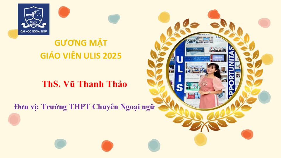– Gương mặt giảng viên ULIS: Cô Nguyễn Hoàng Anh (Khoa NN&VH Trung Quốc), Cô Chu Thị Phong Lan (Khoa NN-VH Việt Nam & Đông Nam Á), Cô Lê Thị Minh Nguyệt (Khoa NN&VH Nhật Bản), Cô Vũ Thanh Thảo (Trường THPT Chuyên Ngoại ngữ), ThS. Đặng Thị Phượng (Khoa NN&VH Anh).