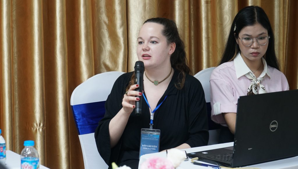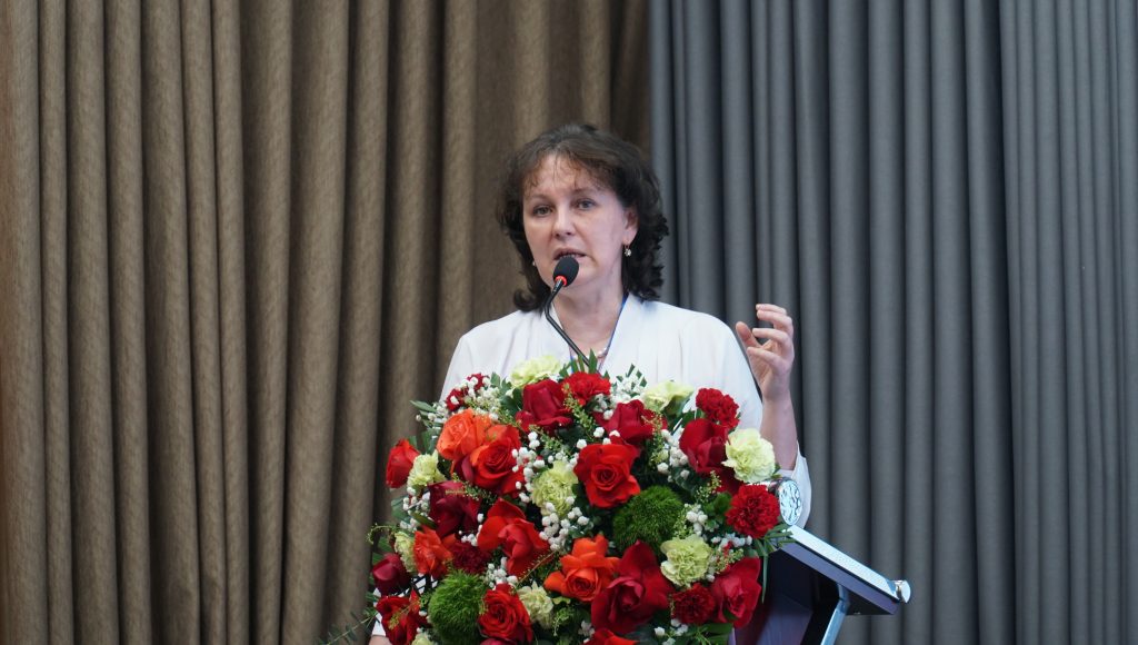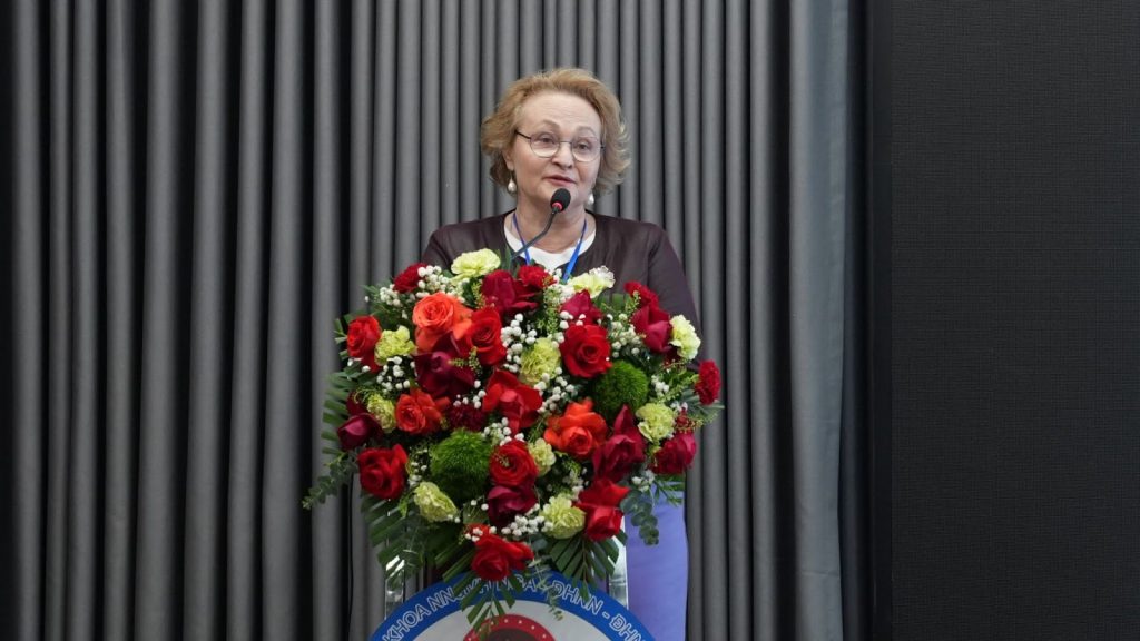 Khép lại phiên toàn thể là báo cáo chung của ba diễn giả: PGS. TSKH Boguslavskaya Vera Vasilevna và TS. Ratnikova Albertina Germanovna cùng đến từ Viện Tiếng Nga quốc gia mang tên A.S. Pushkin, phối hợp với TS. Khuông Thị Thu Trang – giảng viên Trường Đại học Ngoại ngữ, ĐHQGHN. Bài tham luận “Thế giới quan ngôn ngữ Nga và Việt Nam trong các bài nhận xét, đánh giá trên Internet: nghiên cứu đối chiếu” tập trung chủ yếu về sự giao thoa giữa hai ngôn ngữ trong môi trường trực tuyến, qua các nền tảng mạng xã hội, báo chí điện tử và các diễn đàn ngôn ngữ học. Nhóm tác giả đã phân tích hàng nghìn mẫu ngôn ngữ được người trẻ Việt Nam và Nga sử dụng trong không gian số, chỉ ra sự biến đổi đáng chú ý trong cách tư duy, biểu đạt và tiếp nhận văn hóa qua ngôn từ. Tham luận đã mang lại một cái nhìn hiện đại và năng động về Nga học, khi ngôn ngữ không còn giới hạn trong giảng đường mà đã bước chân vào thế giới số – nơi giao thoa, sáng tạo và hội nhập diễn ra từng ngày.