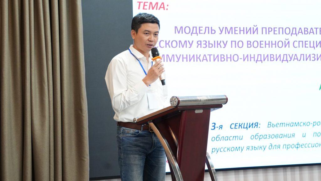 Tiếp nối chương trình, GVC Britov Igor Viktorovich đến từ Đại học nghiên cứu quốc gia “Trường Kinh tế cao cấp” đã trình bày báo cáo “Bản dịch tiếng Nga các tác phẩm văn học nghệ thuật Việt Nam của các nhà Nga ngữ học Việt Nam phản ánh sự khác biệt về loại hình và văn hóa giữa hai ngôn ngữ”. Dịch giả Britov Igor Viktorovich chủ yếu tập trung tái hiện hình ảnh Việt Nam qua ngôn từ, qua đó so sánh các đặc trưng văn hóa, thẩm mỹ và tư duy nghệ thuật của hai dân tộc. Bài báo cáo của ông gây ấn tượng mạnh với những ví dụ sinh động như tác phẩm Nhật ký Đặng Thùy Trâm, Đoạn trường tân thanh – Truyện Kiều,… giúp người nghe cảm nhận rõ ràng điểm khác biệt giữa hai nền văn hóa. Dịch thuật không chỉ là công cụ ngôn ngữ mà nó còn là cầu nối, cuộc đối thoại giữa hai tâm hồn nghệ sĩ.