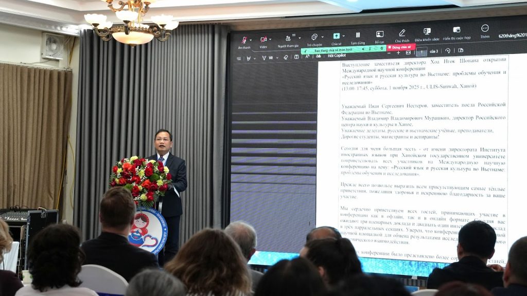 Ngày 1/11/2025, Trường Đại học Ngoại ngữ – Đại học Quốc gia Hà Nội đã tổ chức thành công Hội thảo khoa học quốc tế 2025 với chủ đề “Dạy – học và nghiên cứu ngôn ngữ, văn hóa Nga tại Việt Nam”nhân dịp kỷ niệm 70 năm thành lập Khoa Ngôn ngữ và Văn hóa Nga với hai hình thức trực tiếp và trực tuyến qua nền tảng Zoom Meeting.