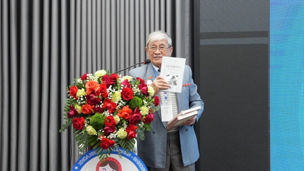 Mở đầu phiên toàn thể, NGƯT Vũ Thế Khôi, Trường Đại học Hà Nội – đã trình bày báo cáo “Trang sử bị lãng quên của ngành Nga học tại Việt Nam”, gợi lại quá trình hình thành và phát triển của ngành, đồng thời tri ân những đóng góp của các thế hệ giảng viên, học giả trong việc xây dựng nền tảng giao lưu văn hóa Việt – Nga. Báo cáo không chỉ tái hiện một “trang sử bị lãng quên” đầy xúc động mà còn nhấn mạnh tầm quan trọng của việc ghi nhận, bảo tồn và phát huy di sản học thuật do các thế hệ đi trước, nhìn lại quá khứ để hiểu rõ giá trị của hiện tại. Kết thúc phần báo cáo, NGƯT Vũ Thế Khôi đã trao tặng một số tác phẩm của mình cho Khoa NN&VH Nga cũng như dành tặng cho Trường Đại học Ngoại ngữ – ĐHQGHN.