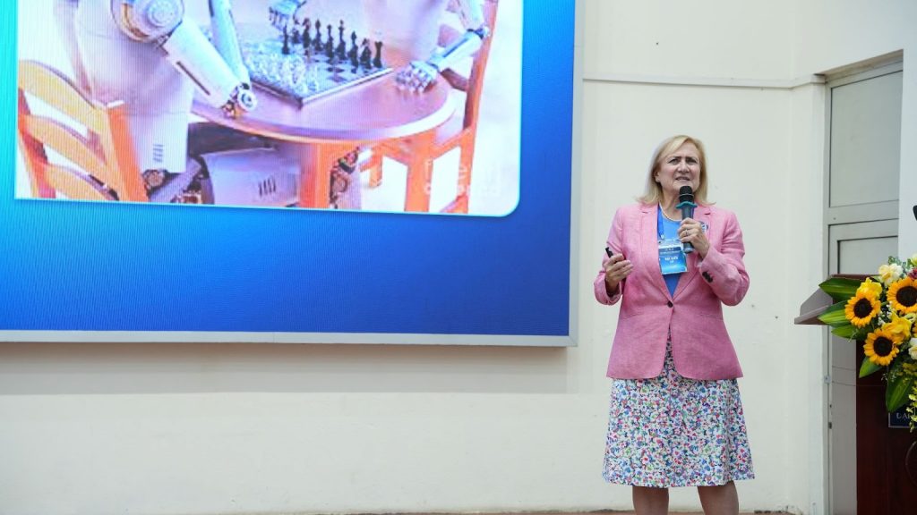 GS. Rosemary Orlando đến từ Đại học Southern New Hampshire (Mỹ) với báo cáo “Tái hình dung các chương trình đào tạo giáo viên trong kỷ nguyên AI: Mối đe dọa hay công cụ mạnh mẽ cho dạy và học?” đã nhận định rằng quá trình hội nhập ngày càng sâu rộng của Việt Nam vào nền kinh tế toàn cầu đang thúc đẩy nhu cầu về năng lực tiếng Anh, từ đó tác động trực tiếp đến thực tiễn đào tạo giáo viên tiếng Anh như ngoại ngữ (EFL). Trong bối cảnh lớp học tiếng Anh tại Việt Nam, Trí tuệ Nhân tạo (AI) sẽ ảnh hưởng thế nào đến cách chúng ta đào tạo giáo viên?.