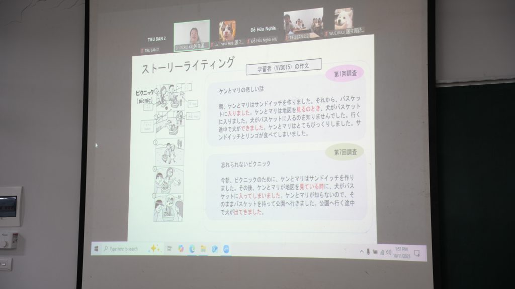 Cũng tại Hội thảo đã diễn ra các phiên báo cáo tại tiểu ban song song. Cụ thể, tiểu ban 1 gồm những báo cáo xoay quanh chủ đề “Giảng dạy tiếng Nhật”, nội dung tại tiểu ban 2 là “Ứng dụng AI trong giảng dạy tiếng Nhật và thụ đắc ngôn ngữ” và tiểu ban 3 có các phần trình bày về “Nhật ngữ học”.