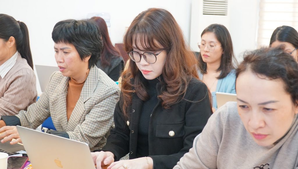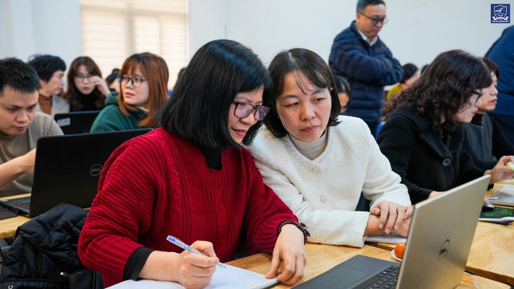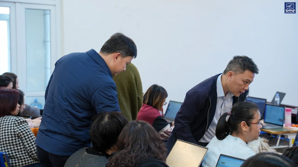 Tiếp tục buổi lễ, Phó Trưởng phòng KHCN&HTPT Nguyễn Thị Lan Hường và Phó Trưởng phòng QTĐH Nguyễn Tiến Dũng đã hướng dẫn sử dụng và khai thác hệ thống khóa học cho các thầy cô. Các học viên đã được trực tiếp hướng dẫn đăng nhập hệ thống LMS, cách khai thác các module học tập, thực hiện bài tập, cung cấp tài khoản ChatGPT – Go phục vụ học tập, đồng thời thực hiện cam kết hoàn thành khóa học theo đúng yêu cầu.
