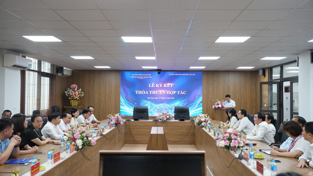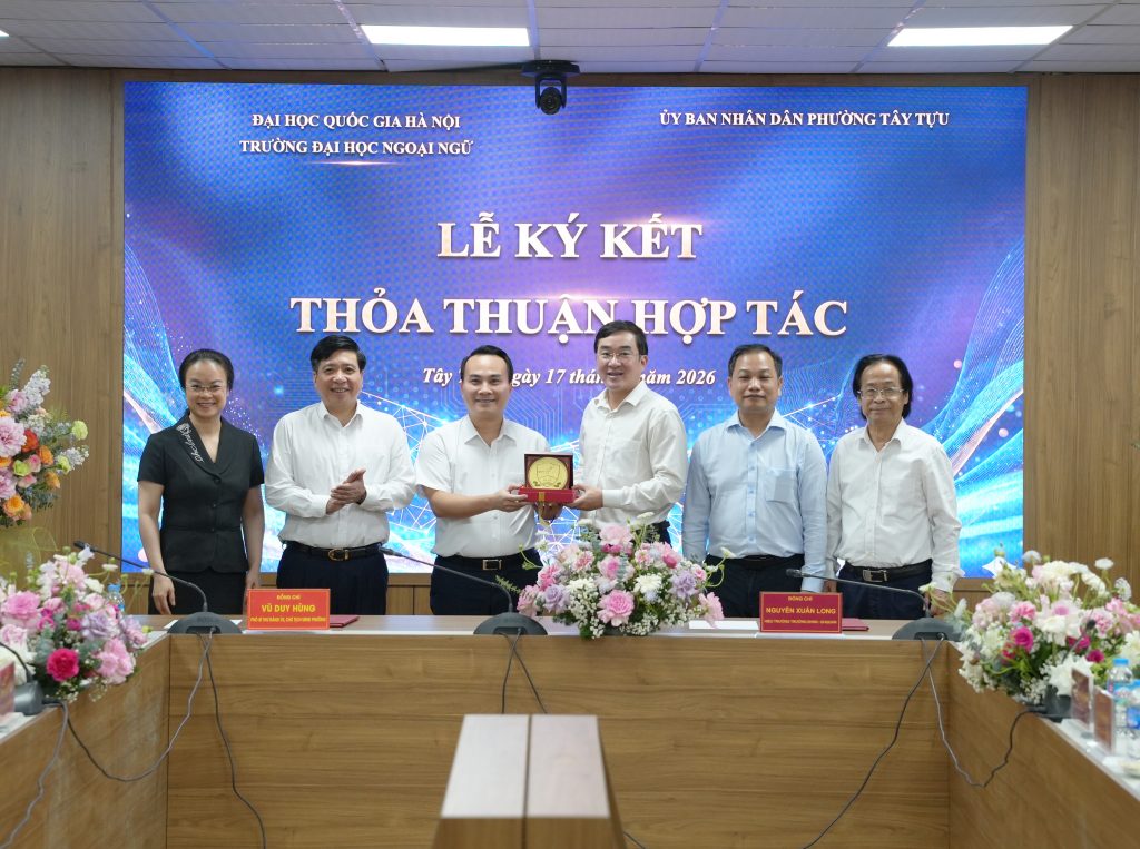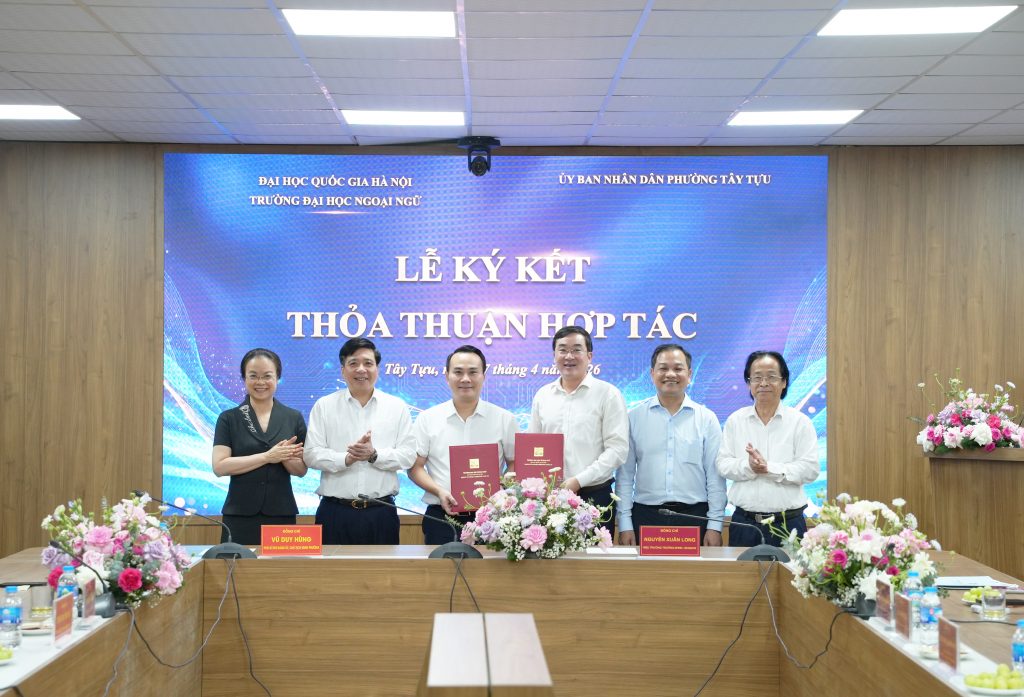 Ngày 17/04/2026, Trường Đại học Ngoại ngữ – Đại học Quốc gia Hà Nội đã có buổi làm việc và ký kết thỏa thuận hợp tác với UBND Phường Tây Tựu (Hà Nội), mở ra những cơ hội phối hợp thiết thực trong đào tạo, nghiên cứu và triển khai các hoạt động hỗ trợ cộng đồng.