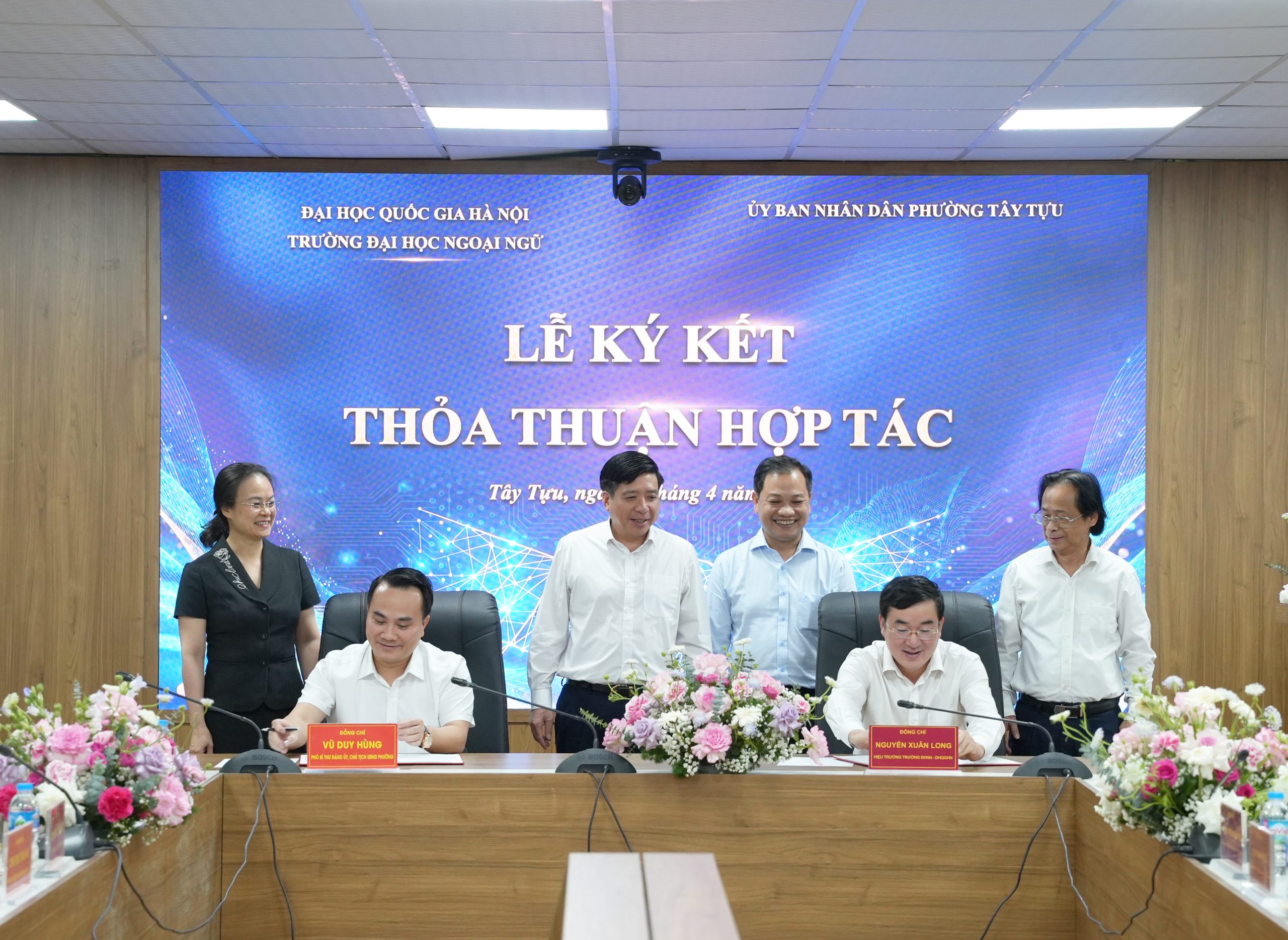 Đại diện UBND Phường Tây Tựu, ông Vũ Duy Hùng bày tỏ sự đồng thuận và đánh giá cao năng lực đào tạo của Nhà trường, đồng thời nhấn mạnh nhu cầu nâng cao chất lượng dạy và học ngoại ngữ tại các cơ sở giáo dục trường học trên địa bàn phường Tây Tựu, đặc biệt trong bối cảnh địa phương đang định hướng phát triển thêm về thương mại và du lịch. Phía UBND Phường Tây Tựu đánh giá việc chính thức hóa hợp tác với Trường Đại học Ngoại ngữ sẽ đem lại nhiều cơ hội giá trị cho hai bên.