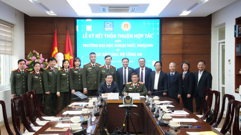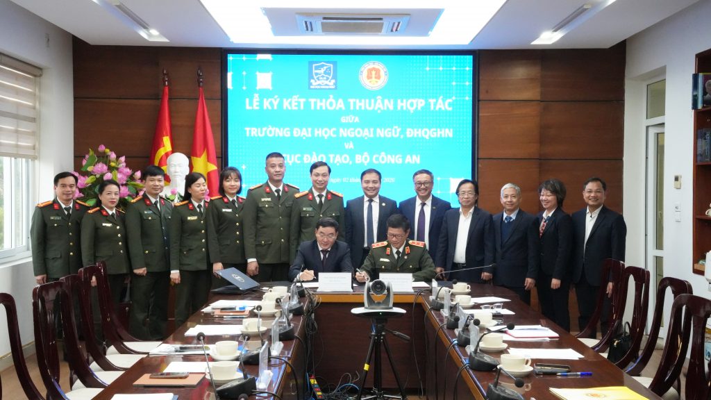 Ngày 02/02/2026, Trường Đại học Ngoại ngữ, Đại học Quốc gia Hà Nội và Cục Đào tạo, Bộ Công an đã tổ chức Lễ ký kết thỏa thuận hợp tác giữa hai đơn vị. Buổi lễ đánh dấu bước phát triển mới trong mối quan hệ của hai bên trong việc phối hợp đào tạo, bồi dưỡng và nâng cao năng lực ngoại ngữ cho lực lượng Công an nhân dân trong bối cảnh hội nhập quốc tế sâu rộng và yêu cầu chuẩn hóa nguồn nhân lực chất lượng cao.