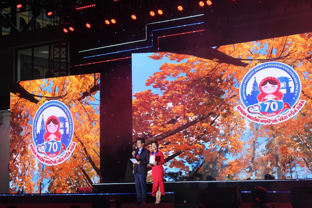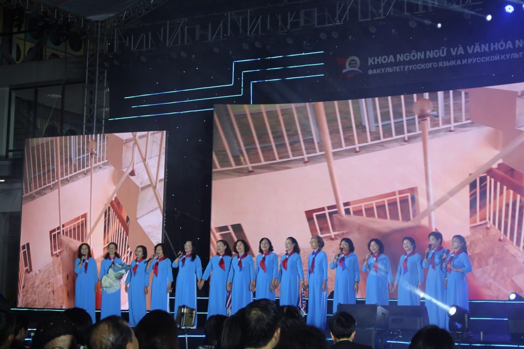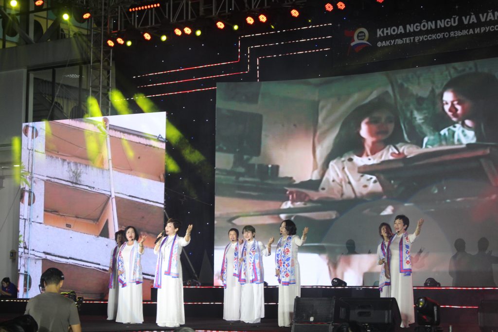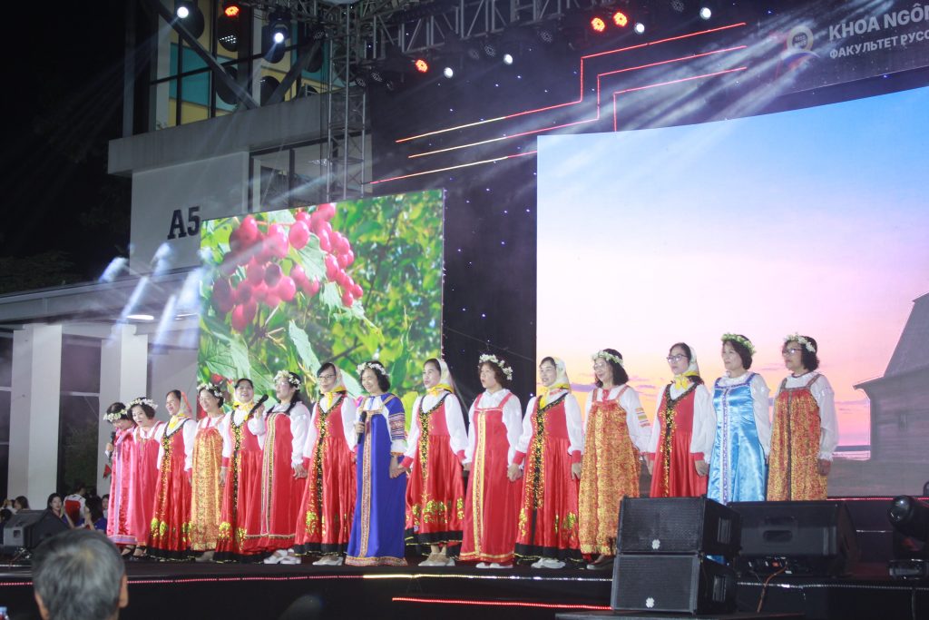 Sau buổi lễ là Chương trình nghệ thuật chào mừng “70 năm – hành trình phát triển” với các tiết mục nghệ thuật đầy công phu, được chuẩn bị kỹ lưỡng và mãn nhãn đến từ các cựu giáo chức, cựu sinh viên, cán bộ, sinh viên của Khoa NN&VH Nga, tạo nên không khí sôi nổi, hứng khởi, tươi vui và đọng lại nhiều dư âm cho buổi lễ.