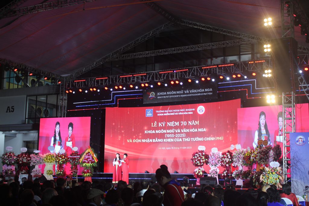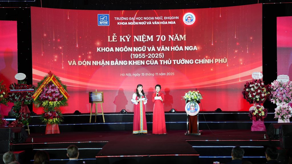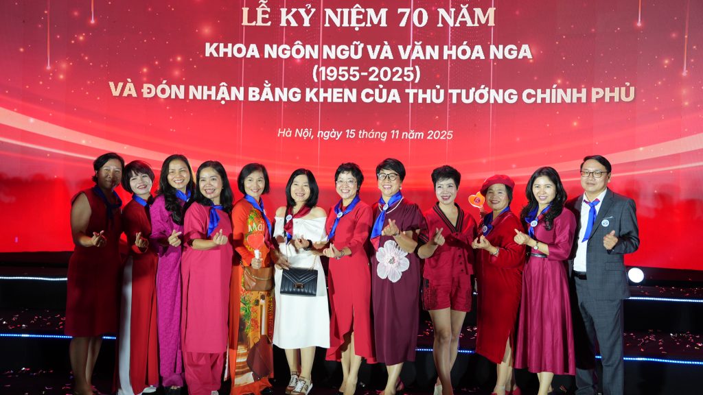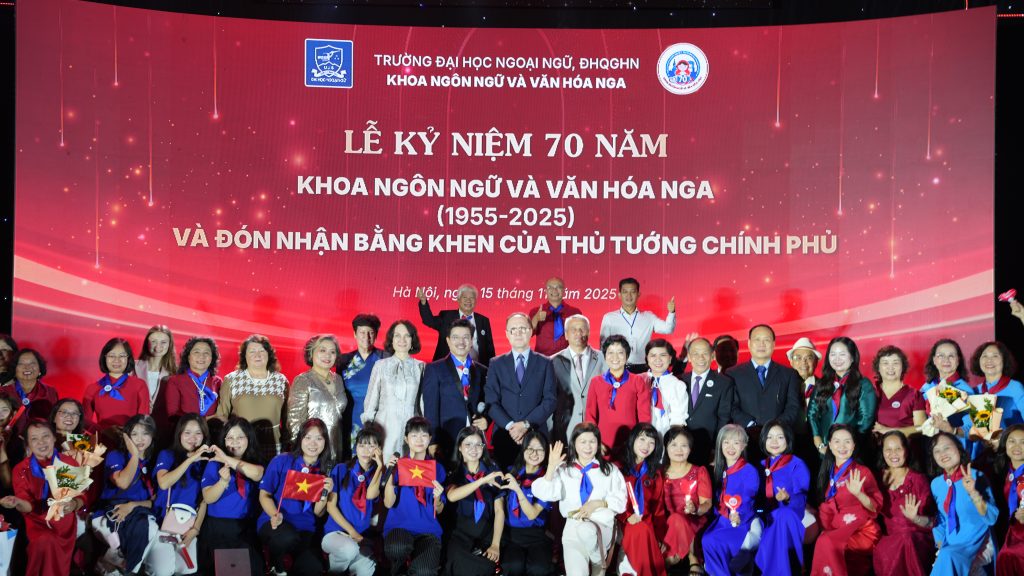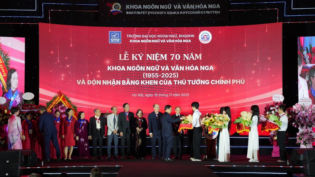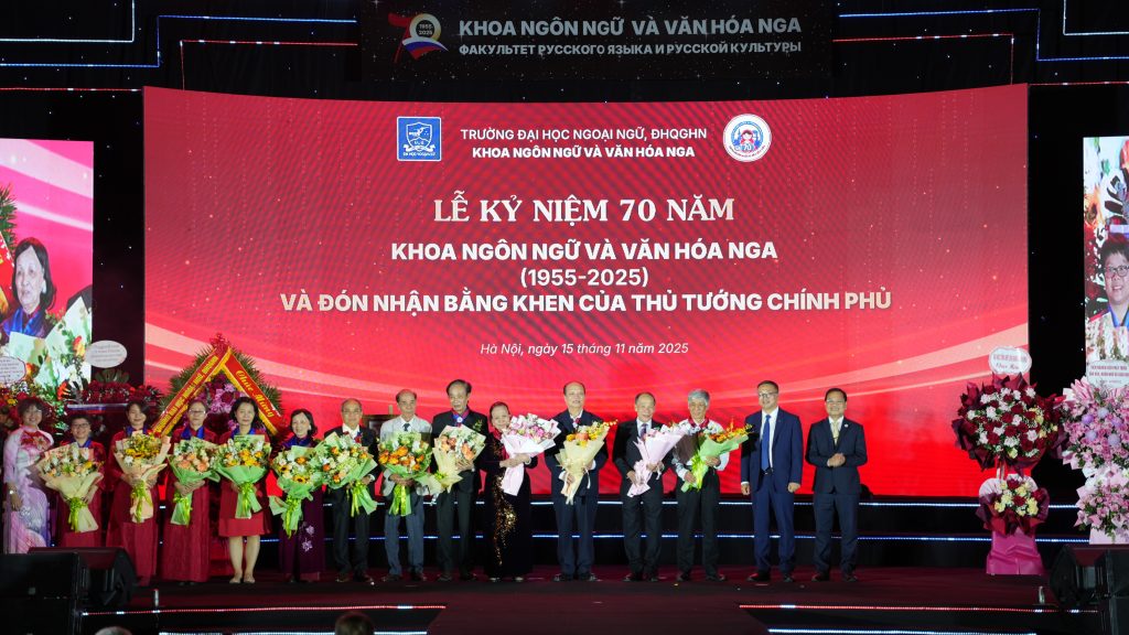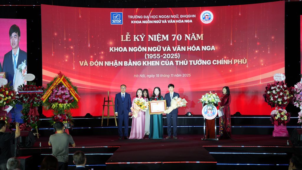 Ngày 15/11/2025, Trường Đại học Ngoại ngữ – Đại học Quốc gia Hà Nội đã long trọng tổ chức Lễ kỷ niệm 70 năm thành lập Khoa Ngôn ngữ và Văn hoá Nga và đón nhận Bằng khen của Thủ tướng Chính phủ nước Cộng hoà Xã hội Chủ nghĩa Việt Nam cho Khoa, ghi nhận những đóng góp quan trọng của Khoa trong đào tạo, nghiên cứu khoa học cũng như thúc đẩy hợp tác và giao lưu văn hoá Việt – Nga suốt bảy thập kỷ qua.