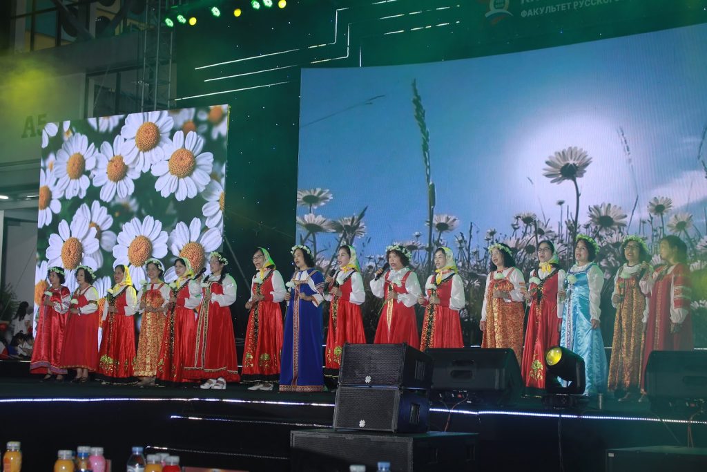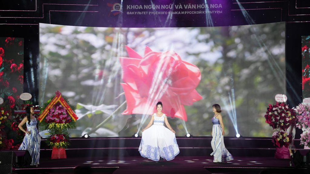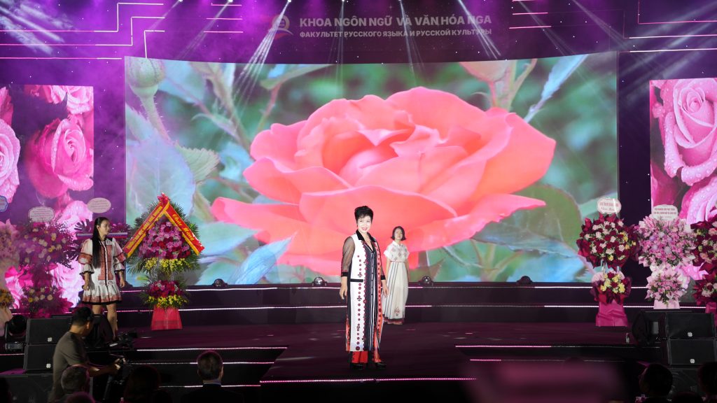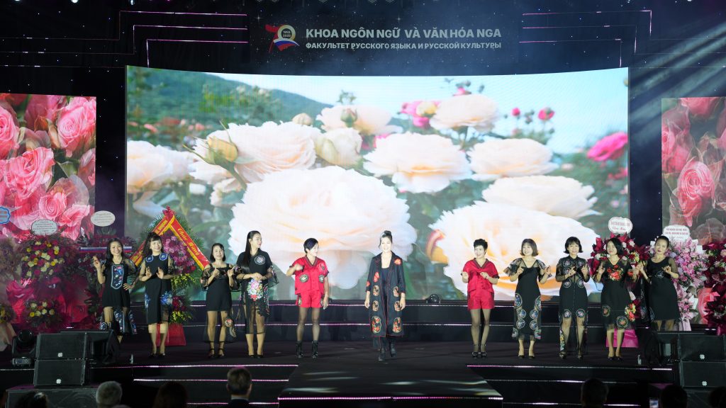 Mở đầu buổi lễ là phần trình diễn “Thời trang Họa tiết Nga” với những thiết kế của nhà thiết kế Minh Hạnh qua phần thể hiện của các cựu sinh viên Khoa NN&VH Nga. Những bước catwalk uyển chuyển cùng các hoa văn truyền thống đặc trưng đã mang đến một màn mở màn đầy ấn tượng, vừa tôn vinh vẻ đẹp văn hóa Nga, vừa thể hiện niềm tự hào của các thế hệ sinh viên Khoa.