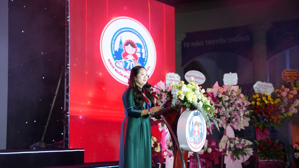 Trong bài diễn văn khai mạc, TS. Phạm Dương Hồng Ngọc, Trưởng Khoa Ngôn ngữ và Văn hóa Nga đã nhấn mạnh ý nghĩa buổi lễ trong việc nhìn lại chặng đường phát triển của Khoa và bày tỏ lòng tri ân sâu sắc tới các thầy cô, cán bộ, sinh viên đã chung tay vun đắp, gìn giữ và phát huy giá trị tốt đẹp của Khoa trong suốt bảy thập kỷ vừa qua. TS. Phạm Dương Hồng Ngọc cho biết từ những nền tảng vững chắc đã được xây dựng cùng với sự quan tâm chỉ đạo từ Ban lãnh đạo Nhà trường, tinh thần đoàn kết của cán bộ, giảng viên, sinh viên và sự ủng hộ của các đối tác trong và ngoài nước, Khoa sẽ tiếp tục hoàn thành xuất sắc những nhiệm vụ được giao, khẳng định vị thế là trung tâm đào tạo và nghiên cứu Ngôn ngữ và Văn hóa Nga hàng đầu tại Việt Nam, đồng thời vun đắp tình hữu nghị Việt Nam với Liên bang Nga và các nước nói tiếng Nga.