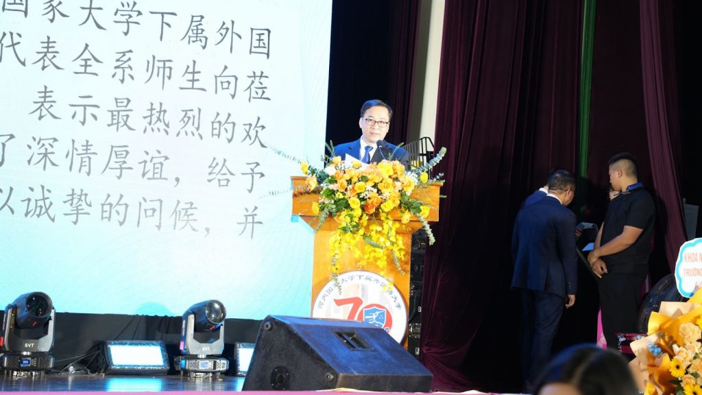 Cũng trong buổi lễ, Tham tán Đại sứ quán Trung quốc La Diệu Quang khẳng định Trường Đại học Ngoại ngữ – Đại học Quốc gia Hà Nội là một cơ sở đào tạo ngoại ngữ danh tiếng của Việt Nam, nơi đã bồi dưỡng nhiều thế hệ nhân tài ngoại ngữ và các chuyên gia nghiên cứu quốc tế xuất sắc. Ông nhấn mạnh Khoa Ngôn ngữ và Văn hóa Trung Quốc là một trong những đơn vị có lịch sử lâu đời nhất của Nhà trường, được thành lập từ năm 1955 cùng với sự ra đời của Trường Ngoại ngữ. Suốt 70 năm phát triển, Khoa đã đào tạo hàng bao thế hệ học trò, góp phần bồi dưỡng nhiều nhân tài, đến nay đã trở thành một khoa có quy mô lớn và năng lực mạnh của Trường. Nhiều cựu sinh viên của Khoa đã trưởng thành, trở thành những nhà ngoại giao, nhà nghiên cứu và giảng viên Hán ngữ xuất sắc, đồng thời là những cầu nối quan trọng trong giao lưu hữu nghị Việt – Trung.