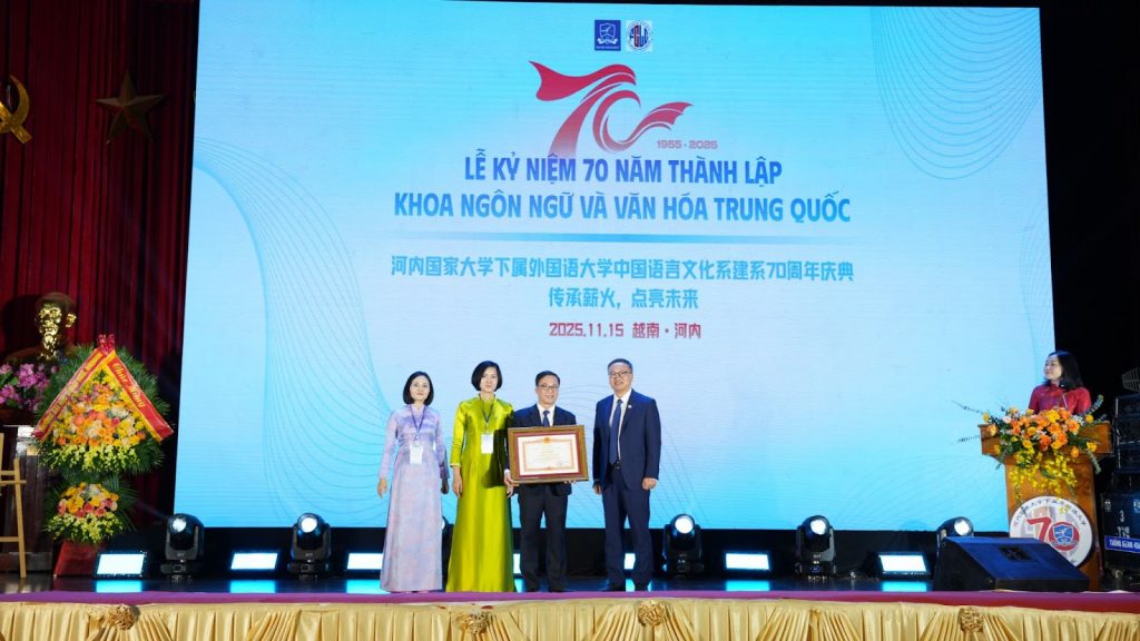 Ngày 15/11/2025, Trường Đại học Ngoại ngữ – Đại học Quốc gia Hà Nội đã long trọng tổ chức lễ kỷ niệm 70 năm thành lập Khoa Ngôn ngữ và Văn hóa Trung Quốc (1955-2025) với chủ đề “Giữ lửa truyền thống – Thắp sáng tương lai”. Chương trình nhằm tri ân các thế hệ thầy cô, đồng thời là dịp để các cựu sinh viên cùng trở về hội ngộ, giao lưu và chia sẻ những kỷ niệm gắn bó với mái trường ULIS.