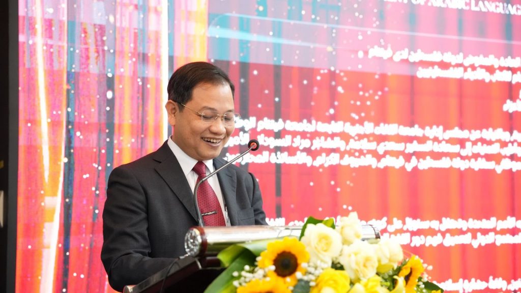 Phát biểu tại buổi lễ, Đại sứ Đặc mệnh toàn quyền nhà nước Palestine tại Việt Nam Saadi Salama nhấn mạnh rằng Palestine luôn đặc biệt coi trọng việc gìn giữ và quảng bá ngôn ngữ Ả Rập, đồng thời xác định đây là một sứ mệnh quan trọng được triển khai thông qua chiến lược hành động tổng thể và lâu dài. Đại sứ quán Palestine tại Việt Nam bày tỏ mong muốn tăng cường hợp tác với các cơ sở đào tạo tiếng Ả Rập tại Việt Nam, đặc biệt là Trường Đại học Ngoại ngữ. Sự kiện lần này là minh chứng rõ nét cho mối quan hệ hợp tác bền chặt giữa hai bên, mở ra triển vọng về nhiều hoạt động ý nghĩa trong thời gian tới.