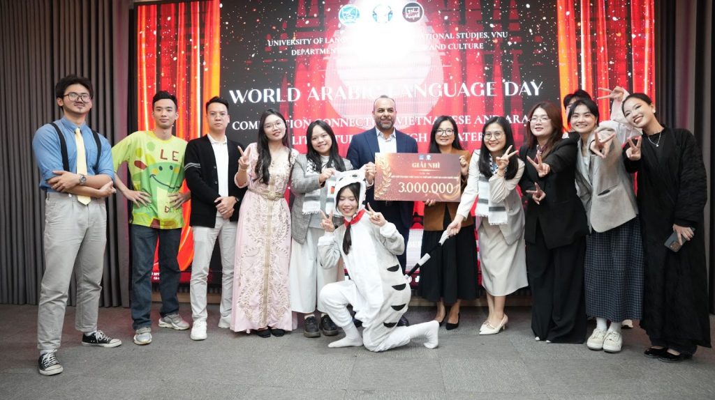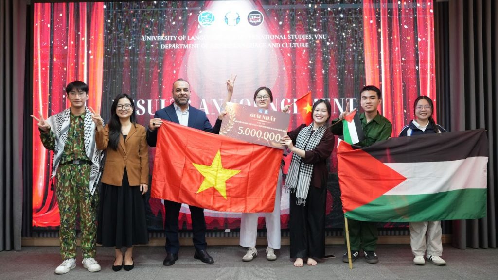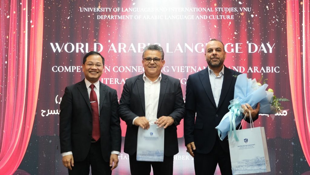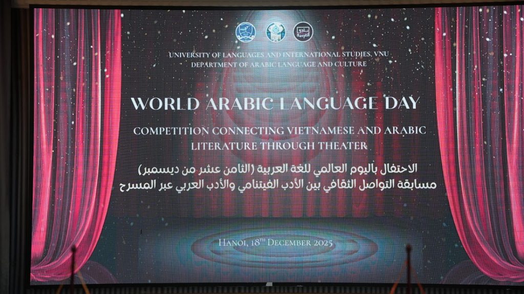 Ngày 18/12/2025, tại Hội trường Sunwah, Trường Đại học Ngoại Ngữ – Đại học Quốc gia Hà Nội phối hợp với Đại sứ quán Palestine đã tổ chức Lễ kỷ niệm ngày Quốc tế tiếng Ả Rập (18/12) và Vòng chung kết Cuộc thi “Kết nối văn học Việt Nam và thế giới Ả Rập qua sân khấu” năm 2025.