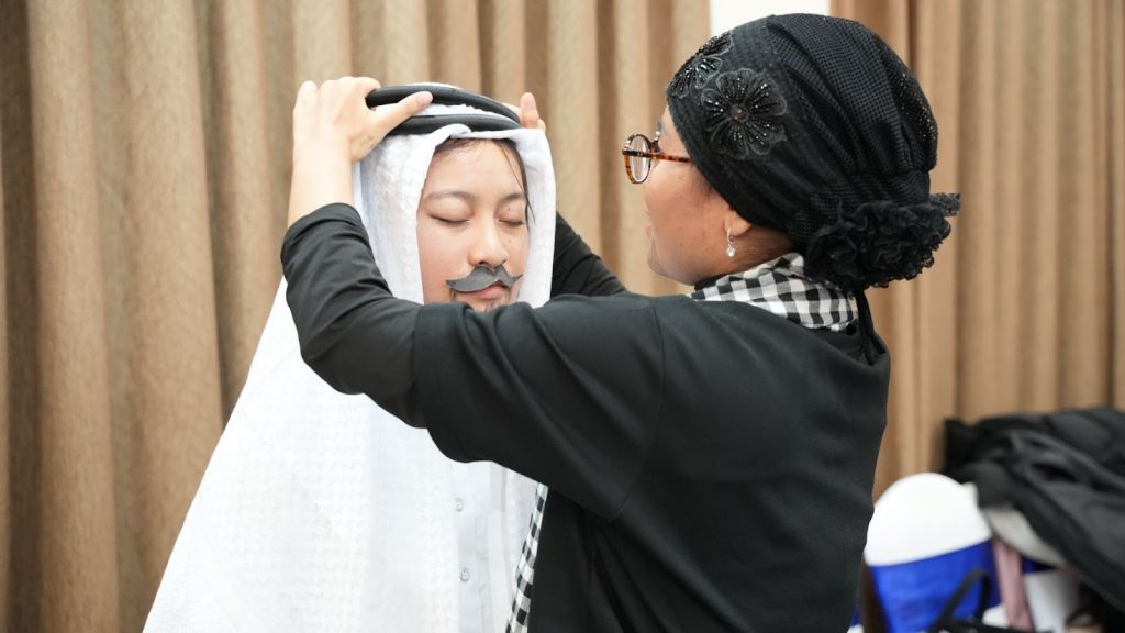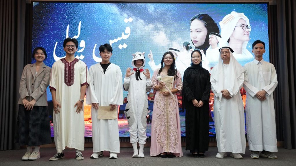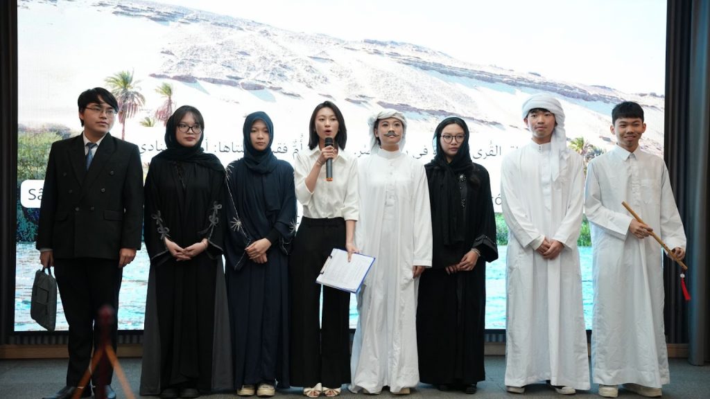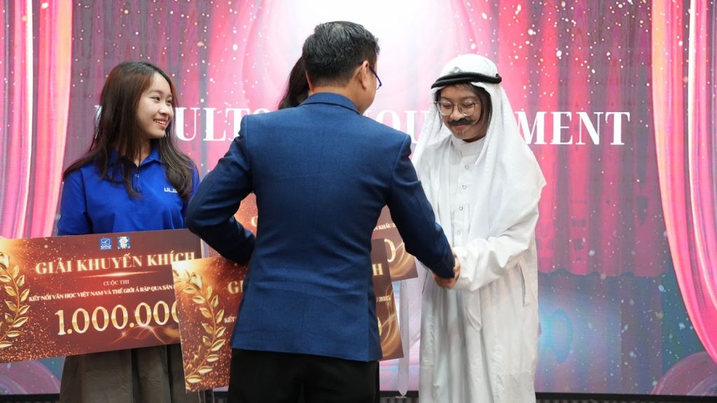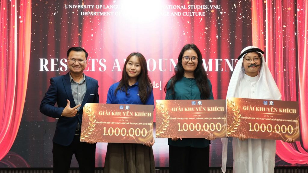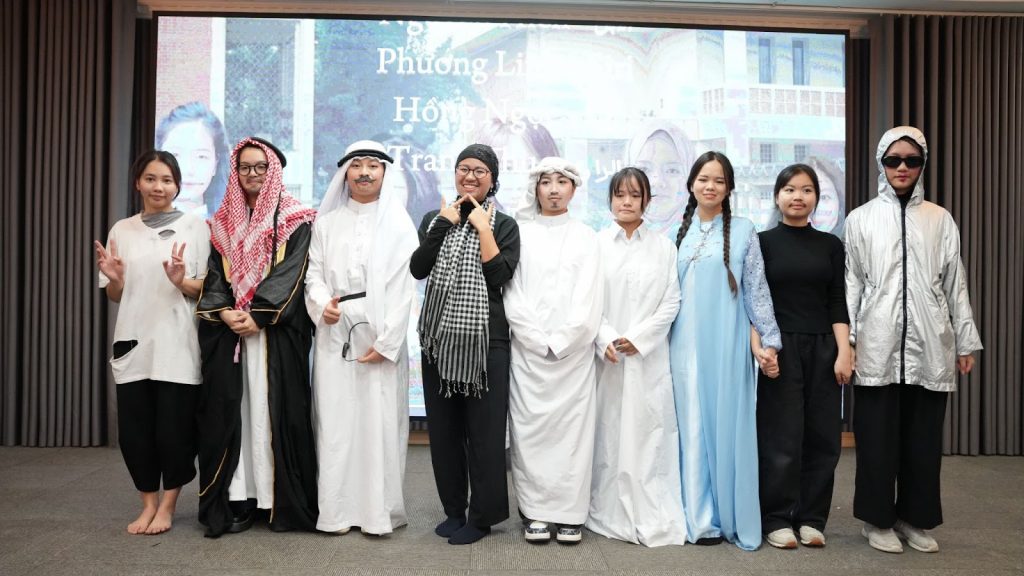 Ngay sau đó, Chung kết cuộc thi “Kết nối văn học Việt Nam và thế giới Ả Rập qua sân khấu” năm 2025 đã chính thức diễn ra trong không khí sôi nổi. Các đội thi đã lần lượt mang đến những phần trình diễn sân khấu hóa được đầu tư công phu, lấy cảm hứng từ các tác phẩm văn học tiêu biểu của Việt Nam và thế giới Ả Rập. Thông qua các hình thức thể hiện đa dạng, sinh viên không chỉ vận dụng tiếng Ả Rập trong thuyết minh và lời dẫn, mà còn cho thấy khả năng cảm thụ văn học, tư duy chuyển thể và sáng tạo nghệ thuật. Các tiết mục đã phản ánh rõ sự nghiêm túc trong học thuật, sự đầu tư về nội dung và tinh thần trách nhiệm của sinh viên đối với cuộc thi.