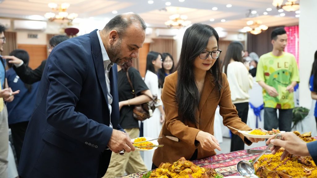 Khép lại chuỗi hoạt động trong khuôn khổ ARABIC DAY 2025, người tham dự còn được hòa mình vào không gian trải nghiệm văn hóa ẩm thực – một điểm nhấn góp phần hoàn thiện bức tranh giao lưu văn hóa của chương trình. Nếu ngôn ngữ và sân khấu mở ra cánh cửa kết nối về tri thức và cảm xúc, thì ẩm thực lại là phương tiện gần gũi, sinh động giúp người tham dự cảm nhận rõ nét hơn bản sắc văn hóa Ả Rập. Phần trải nghiệm ẩm thực không chỉ góp phần khép lại chương trình trong không khí ấm áp, mà còn để lại ấn tượng sâu sắc, qua đó tiếp tục lan tỏa tinh thần kết nối văn hóa với thế hệ sinh viên ULIS.