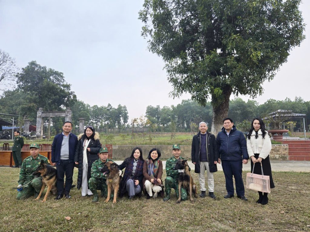 Mở đầu chương trình, đoàn công tác Trường Đại học Ngoại ngữ đã tham quan và theo dõi hoạt động huấn luyện chó nghiệp vụ, qua đó hiểu thêm về đặc thù đào tạo, nhiệm vụ chuyên môn của Trường Trung cấp 24 Biên phòng.