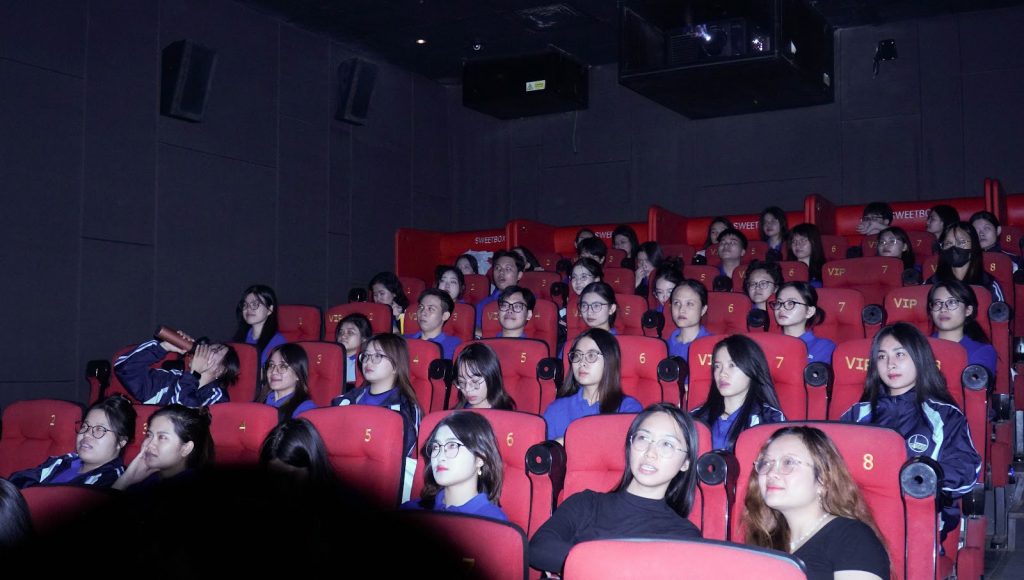 Buổi chiếu có sự hiện diện của đại diện Phòng Đào tạo và Người học, giảng viên, cùng sinh viên là cán bộ lớp, cán bộ Đoàn – Hội từ các khoa.Từ 18h, đông đảo sinh viên đã có mặt tại rạp để check-in, nhận vé và ghi lại những khoảnh khắc đáng nhớ cùng bạn bè. Không khí rộn ràng, háo hức bao trùm cả khán phòng. Khi bộ phim bắt đầu, tất cả đều lặng im, dõi theo từng khung hình, từng câu chuyện được kể bằng cảm xúc chân thành.