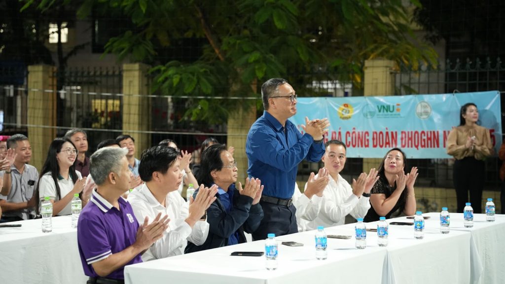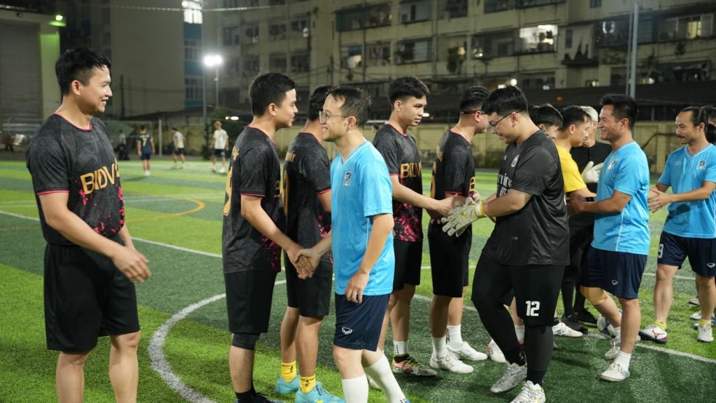 Sau lễ cắt băng khánh thành và trao quà lưu niệm là trận bóng đá giao hữu giữa cán bộ Trường Đại học Ngoại ngữ và BIDV Cầu Giấy. Buổi lễ khép lại trong niềm vui hân hoan, hứa hẹn về những hoạt động thể thao sôi nổi sắp tới sẽ diễn ra ngay tại sân vận động này.