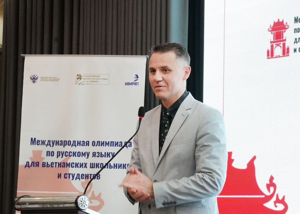 Tiếp sau đó, Nikita Vladimirovich Gusev – Viện trưởng Viện tiếng Nga quốc gia mang tên A.X.Puskin, gửi lời cảm ơn tới các thầy cô giáo đã giúp đỡ các em học sinh, sinh viên trong quá trình tham dự cuộc thi, tới Phân viện Puskin đã hướng dẫn những công nghệ, phương thức giảng dạy hiện đại và hiệu quả. Ông cũng gửi lời cảm ơn tới các bên liên quan đã cùng hợp tác để Cuộc thi được diễn ra trọn vẹn và thành công.